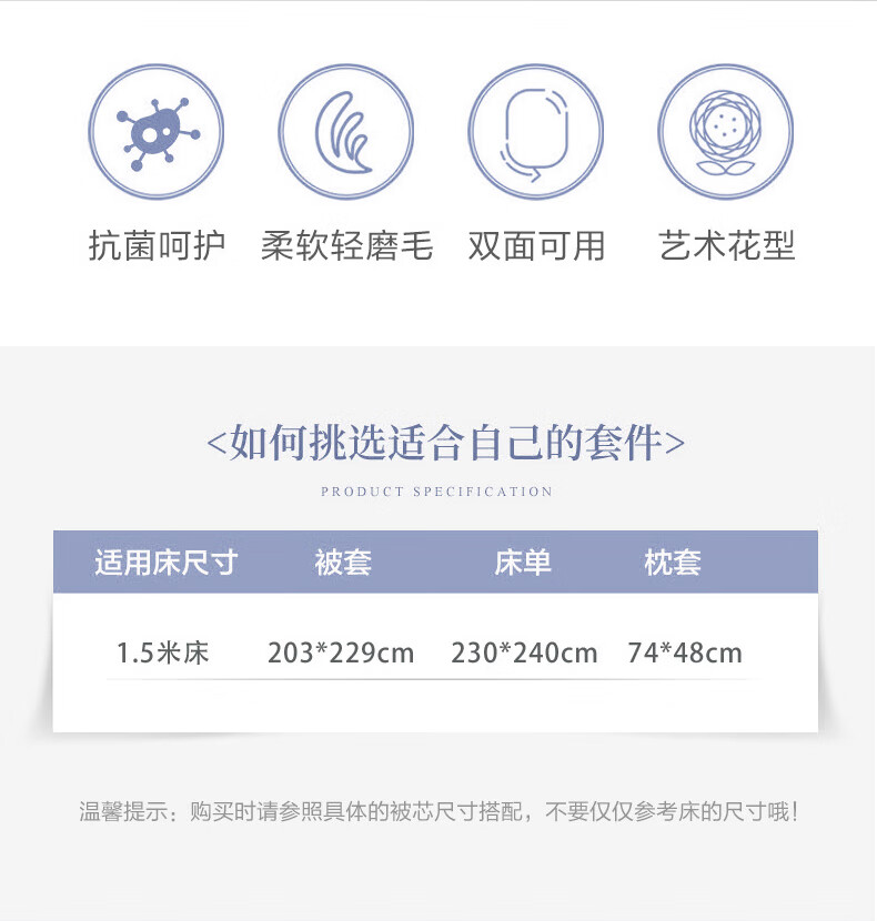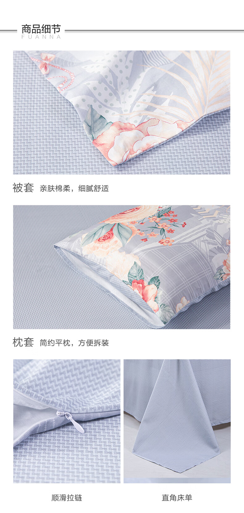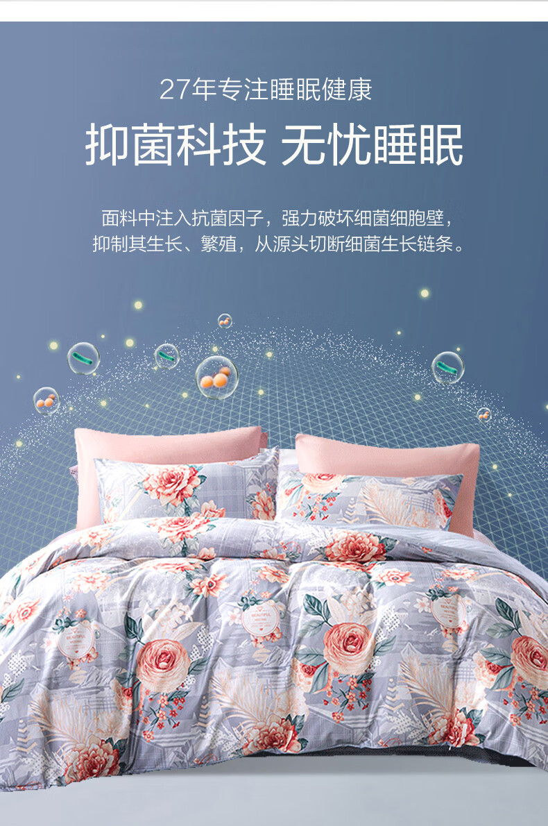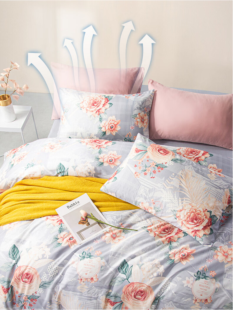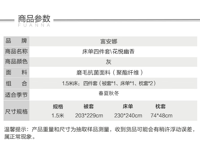 富安娜 磨毛四件套 花悦幽香 203*229cm 混色(单位:套)