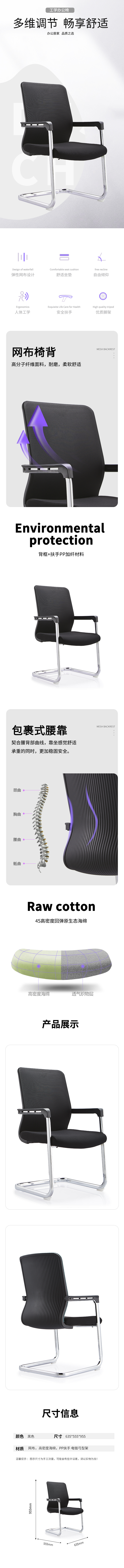 企诺 会议办公椅弓形椅 QN154 635*555*955mm 黑色(单位:张)