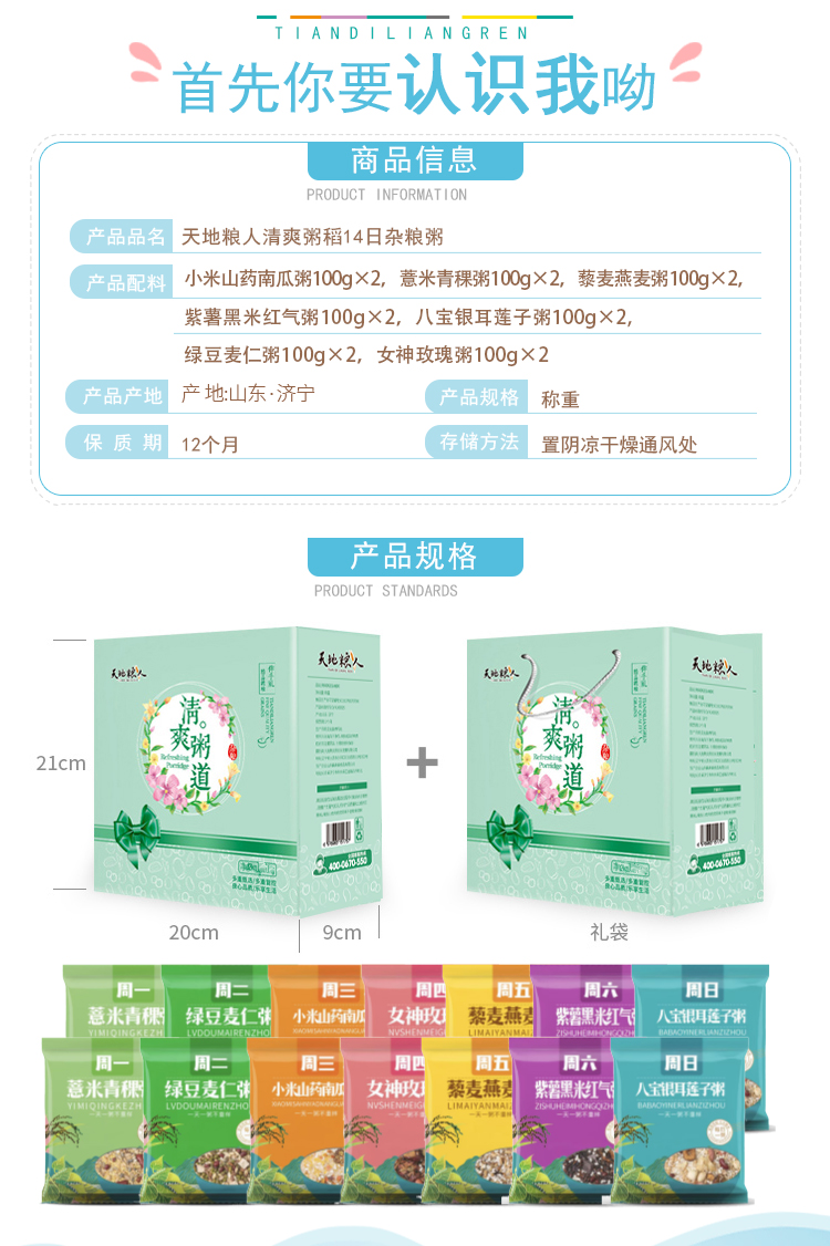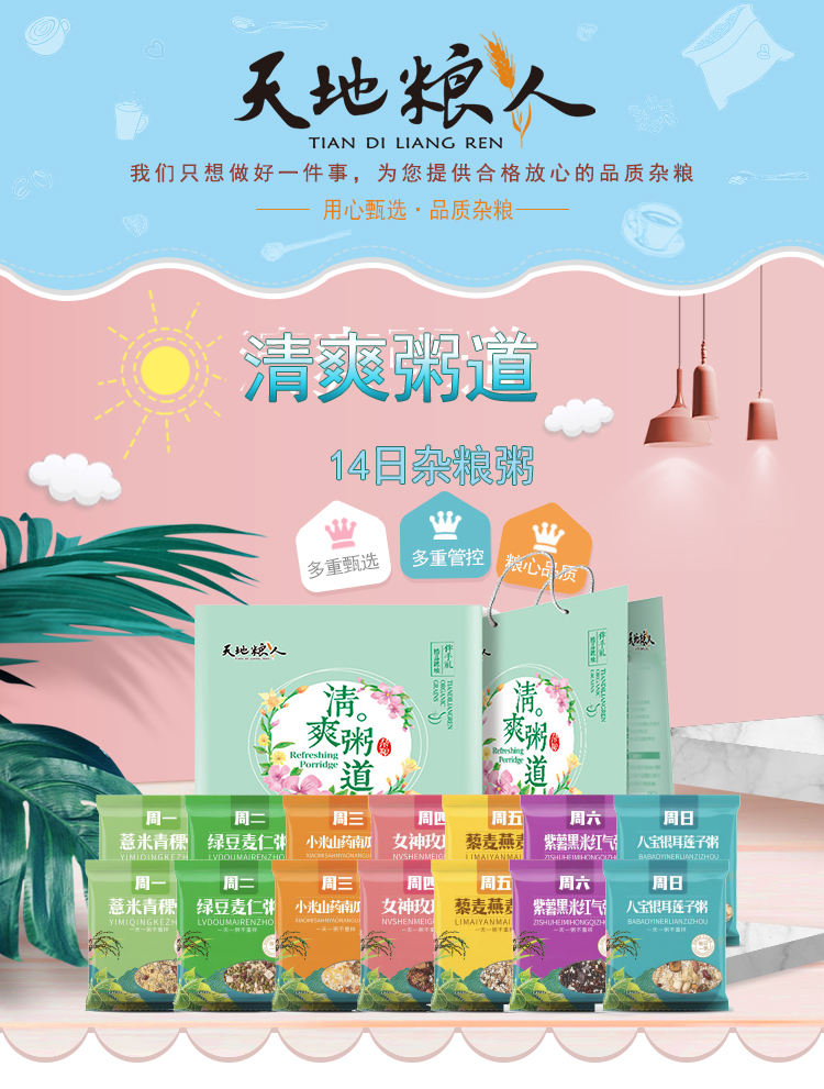 天地粮人 甄制十四日杂粮粥 礼盒 1.4kg 绿色(单位:盒)