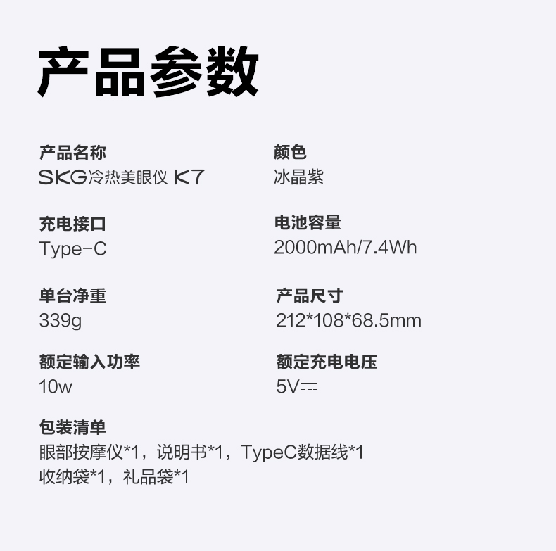SKG 眼部按摩仪豪华 K7 10W 冰晶紫(单位:台)