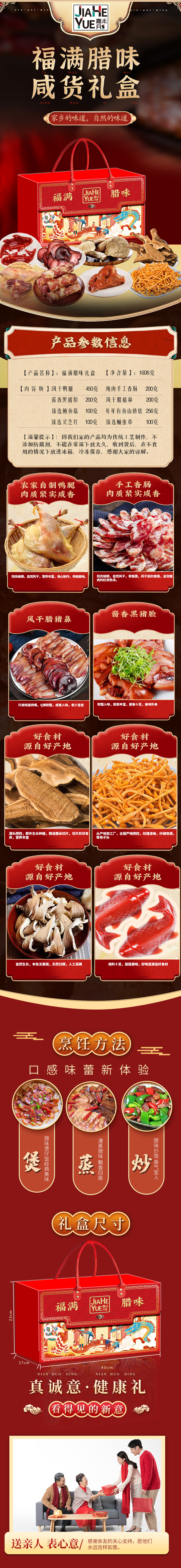 嘉禾月 腊味菌类组合 福满腊味 1606g 红色(单位:盒)