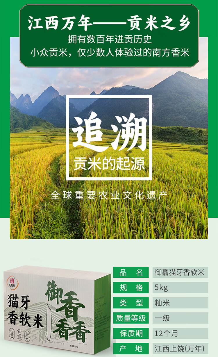 万年贡 大米 御馫猫牙香软米 5kg 绿色(单位:箱)