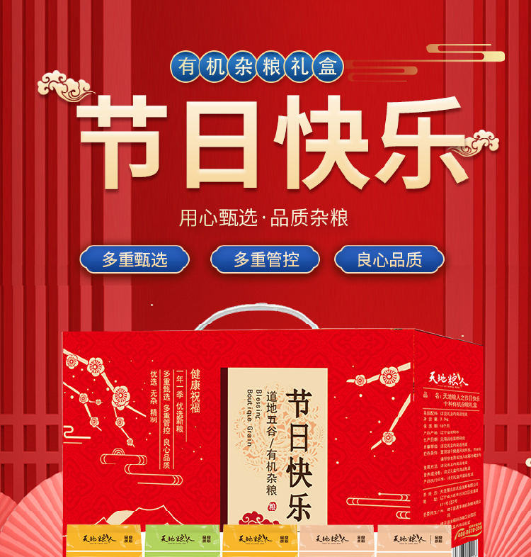 天地粮人 甄制有机节日快乐 杂粮礼盒 3.3kg 红色(单位:盒)