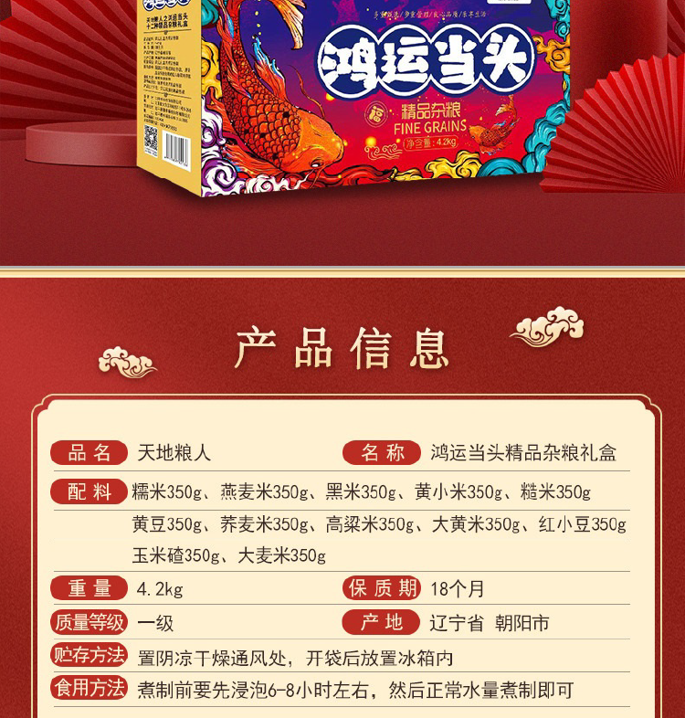 天地粮人 甄制鸿运当头精品十二种 杂粮礼盒 4.2kg 紫色(单位:盒)