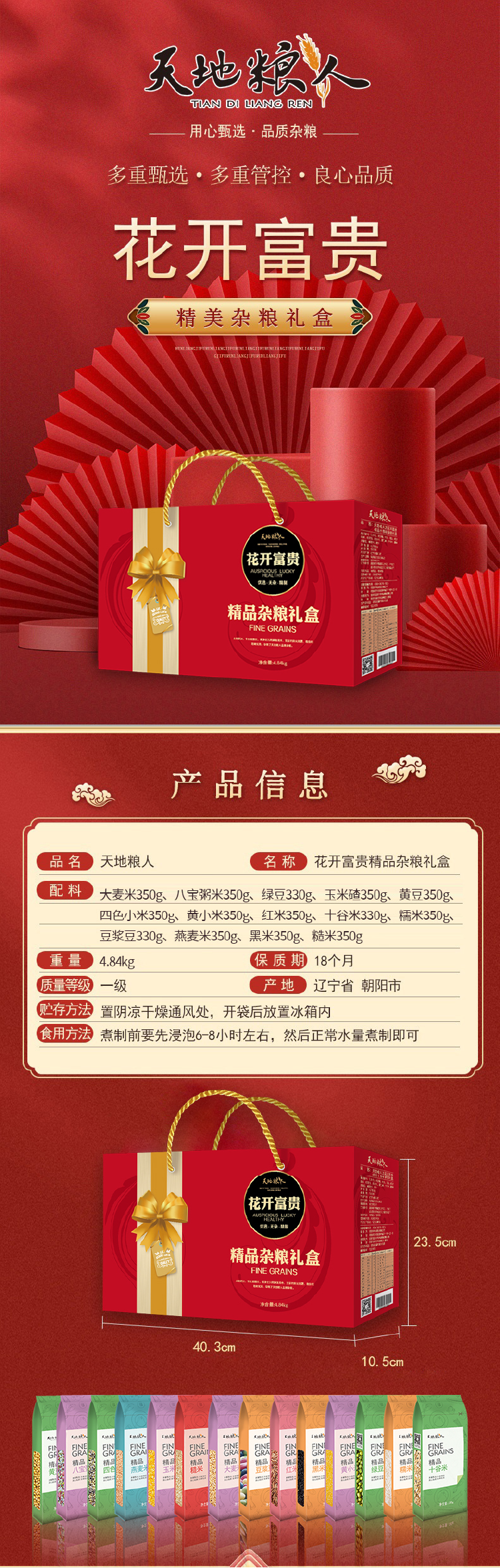 天地粮人 花开富贵精品十四种 杂粮礼盒 4.84kg 红色(单位:盒)