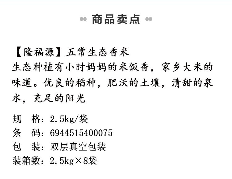五常大米隆福源生态香米双层真空内装 2.5kg*1袋