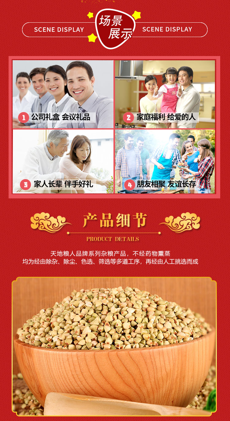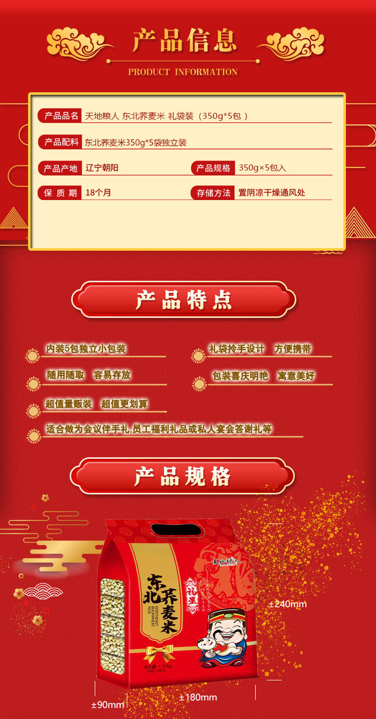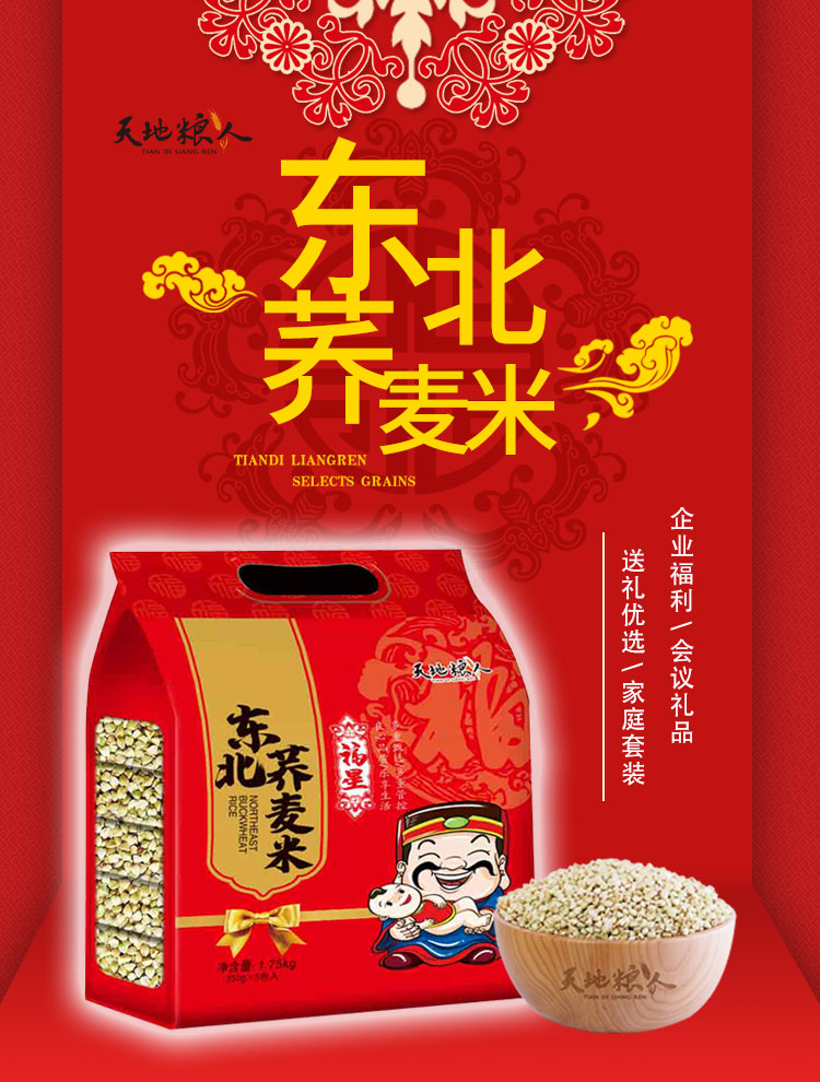天地粮人 精品荞麦 礼袋装 350g*5 红色(单位:袋)