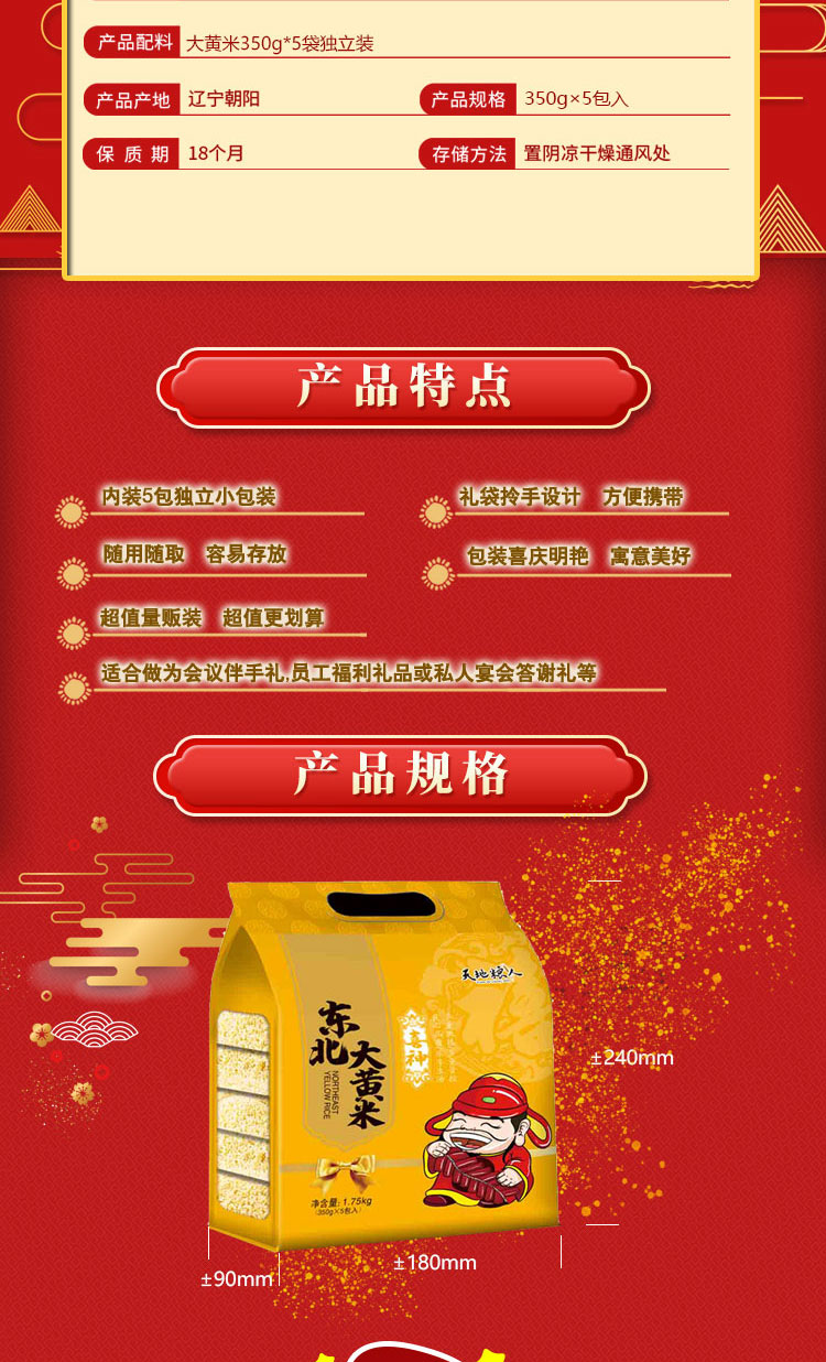 天地粮人 精品大黄米 礼袋装 350g*5 香槟黄(单位:袋)