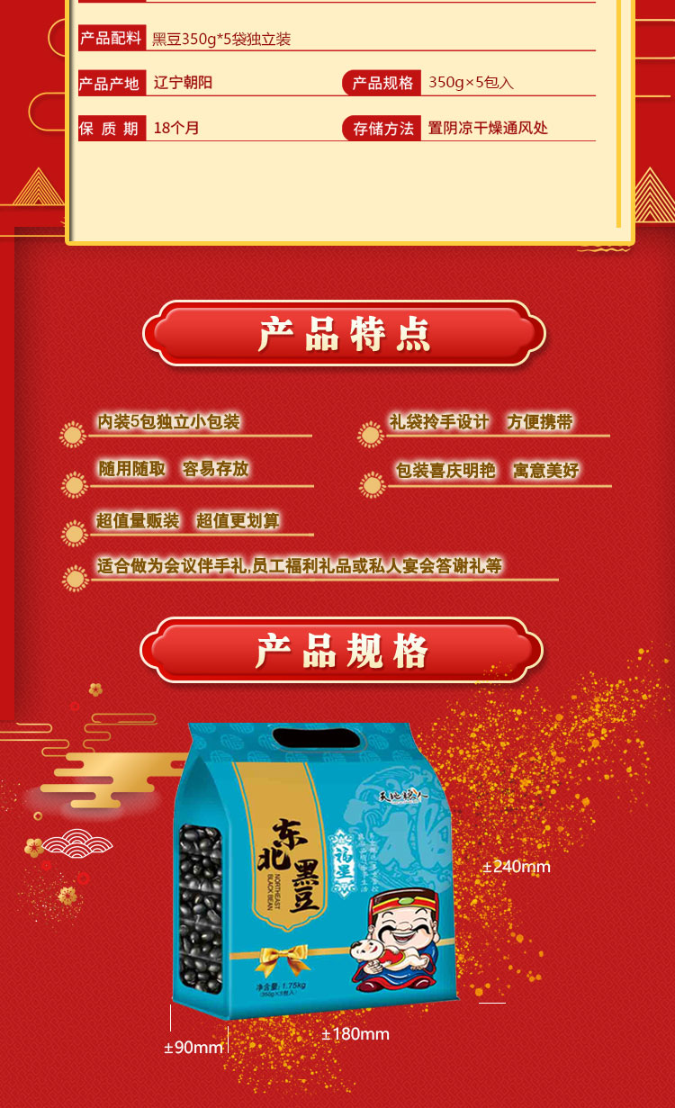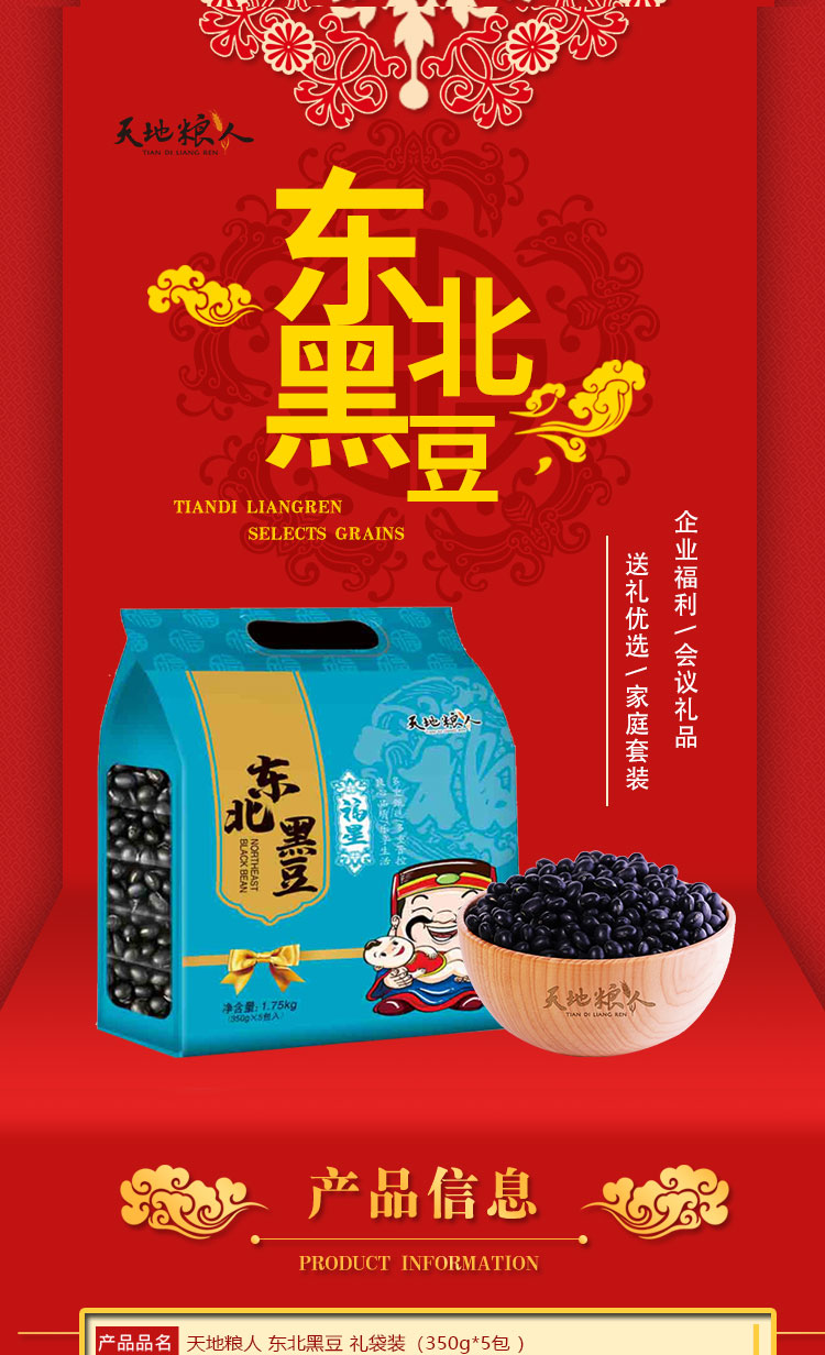 天地粮人 精品黑豆 礼袋装 350g*5 水蓝色(单位:袋)