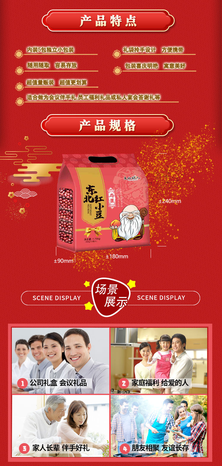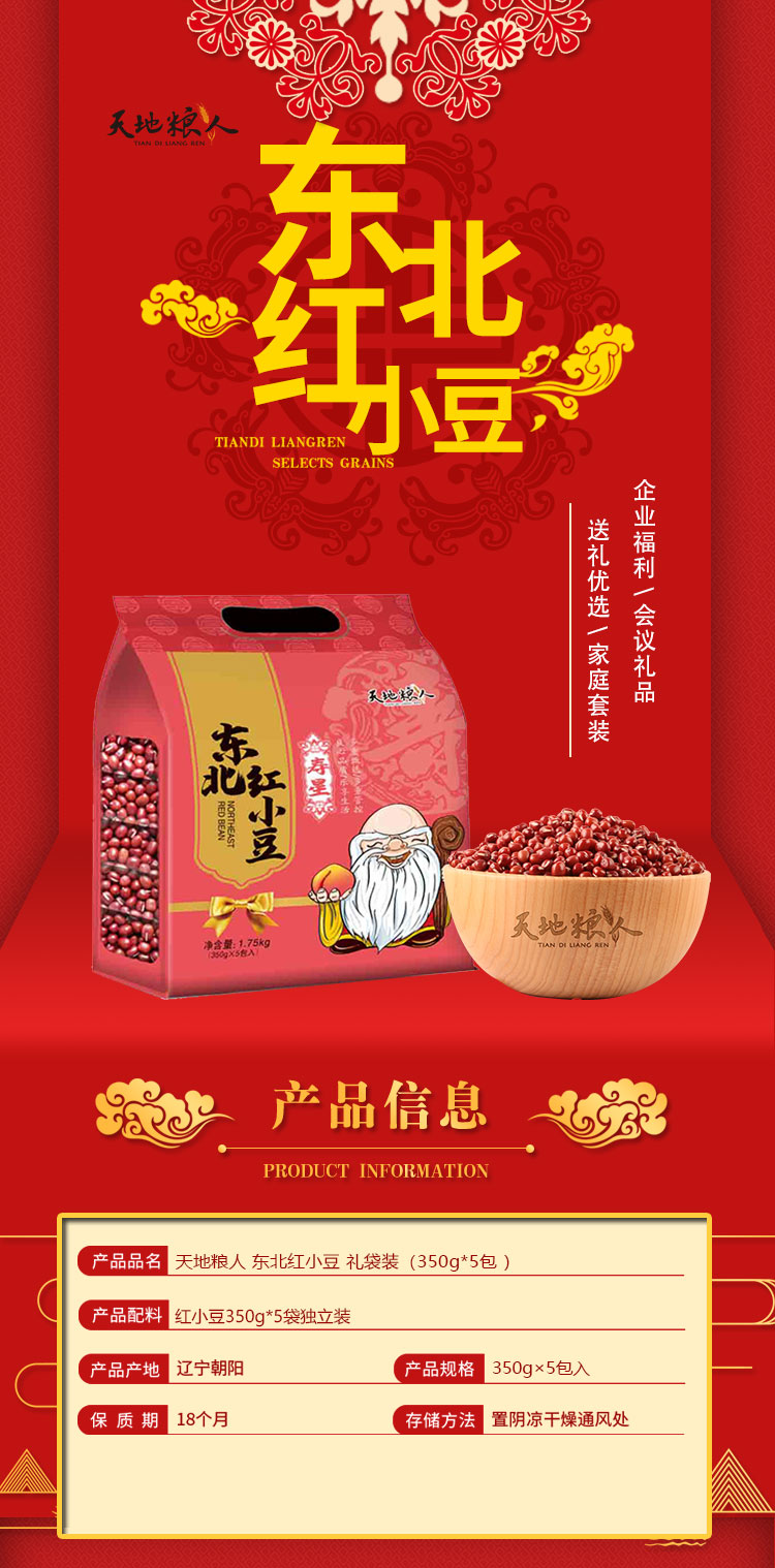 天地粮人 精品红小豆 礼袋装 350g*5 玫瑰红色(单位:袋)