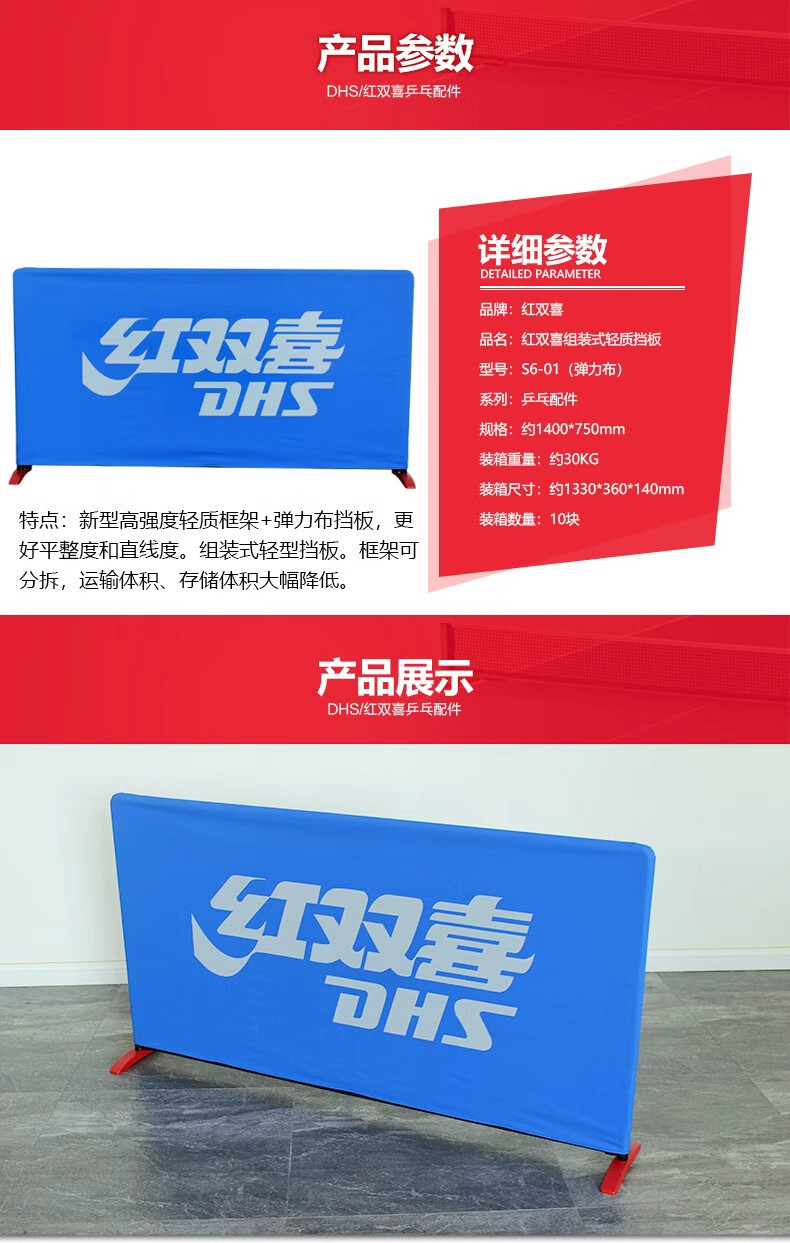 红双喜(DHS) 乒乓挡板台围挡 S6-01 1400*750mm 深蓝色(单位:块)