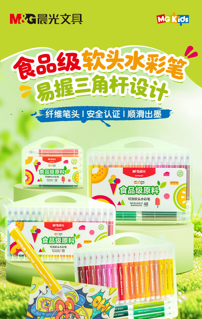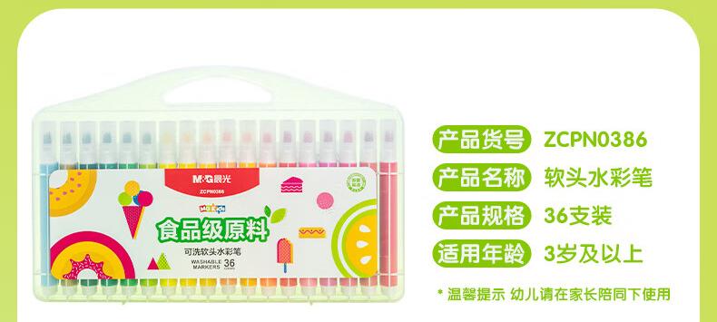晨光(M&G) 食品级水彩笔 ZCPN0386 36色 混色(单位:盒)