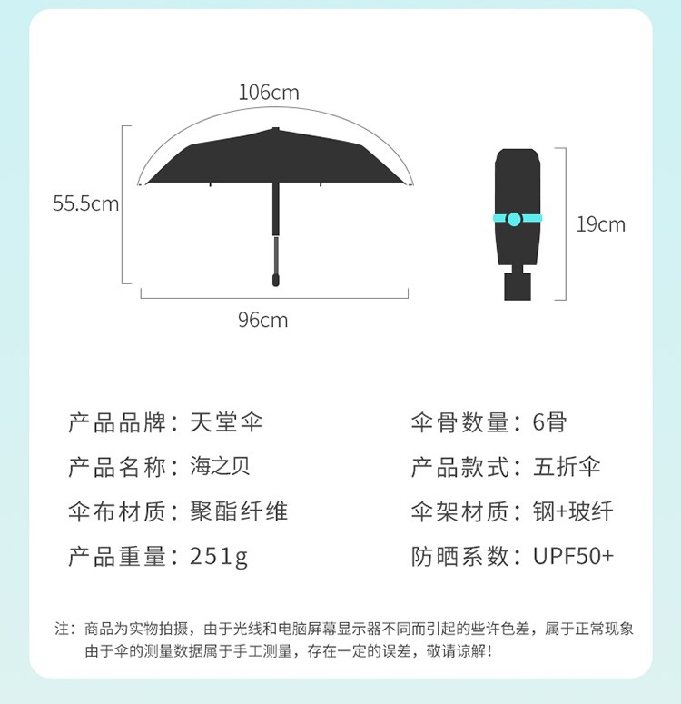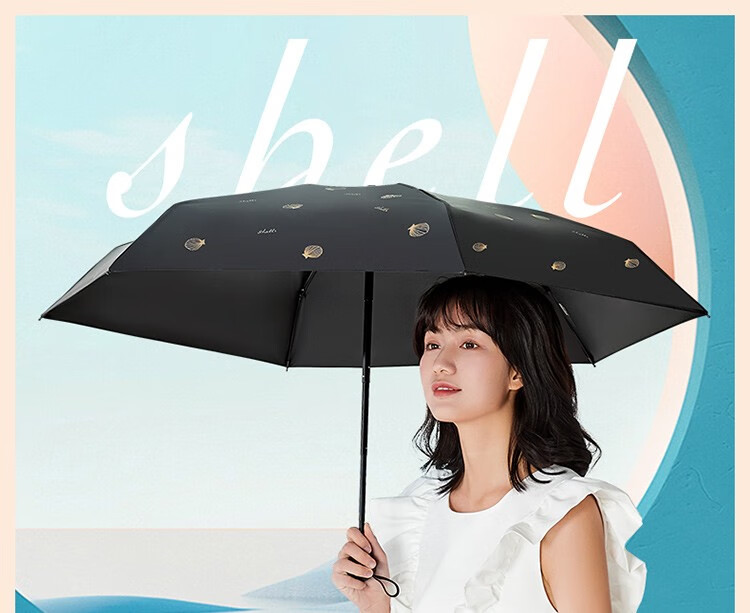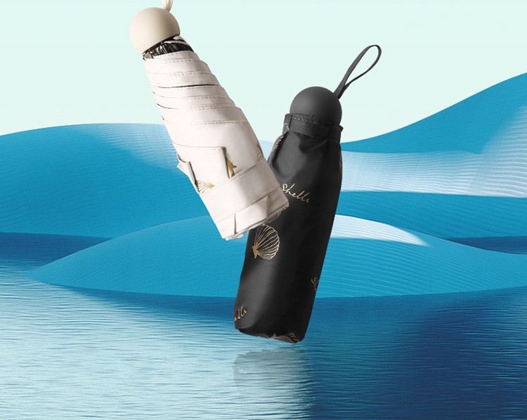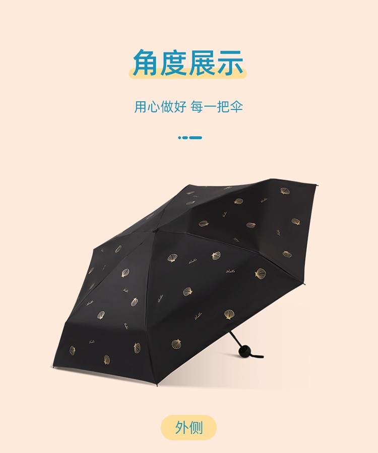 天堂 烫金五折小巧伞海之贝迷你口袋遮阳伞 51116E 53cmX6骨 褐色(单位:把)