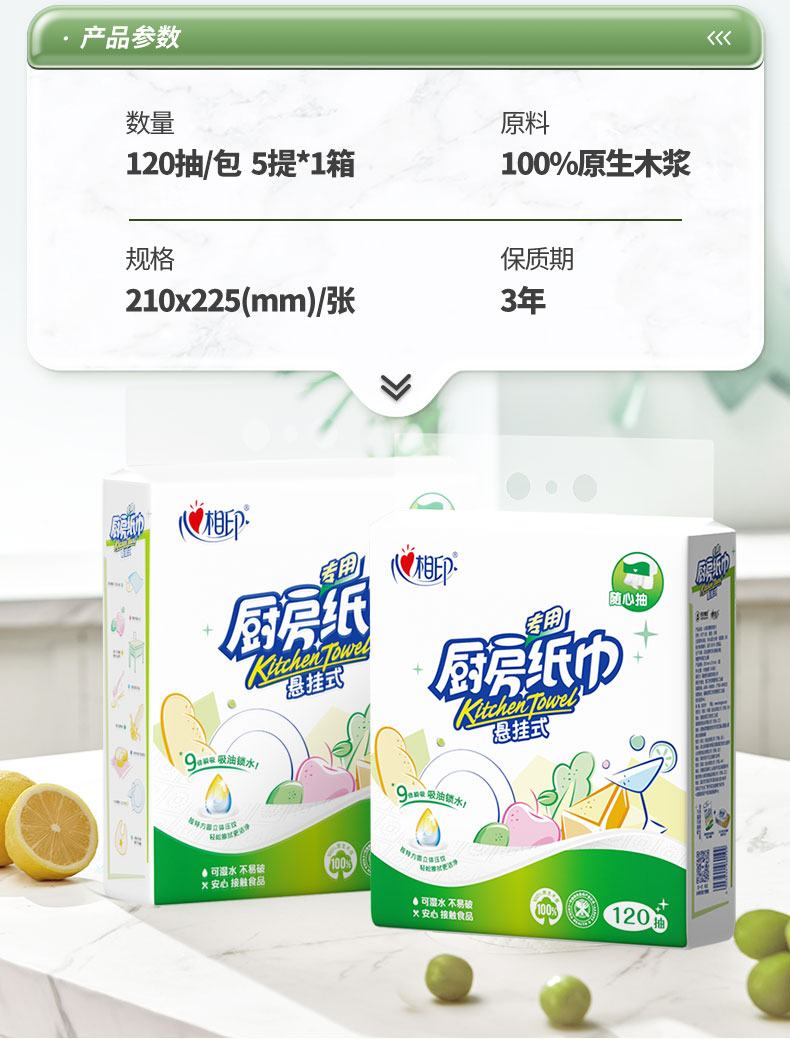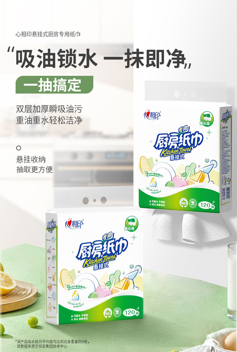 心相印 悬挂式提装厨房纸巾2层 KDT1120 120抽/提*5提 白色(单位:箱)