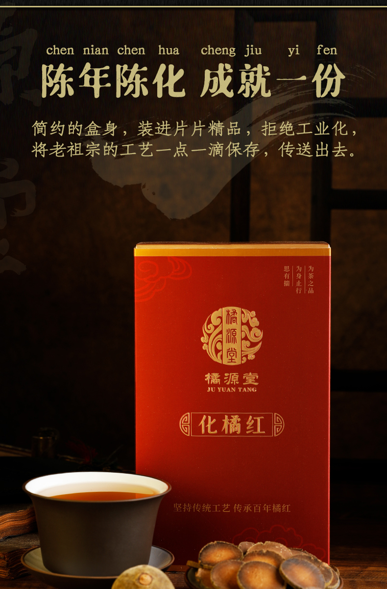 橘源堂 化州橘红二十年陈片 国家地理标志产品 25包x2克/盒 红色(单位:盒)