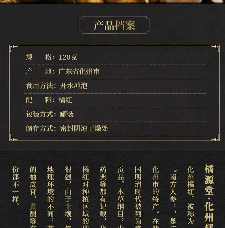 橘源堂 化州橘红十五年陈片 国家地理标志产品 120g/罐 白色(单位:罐)