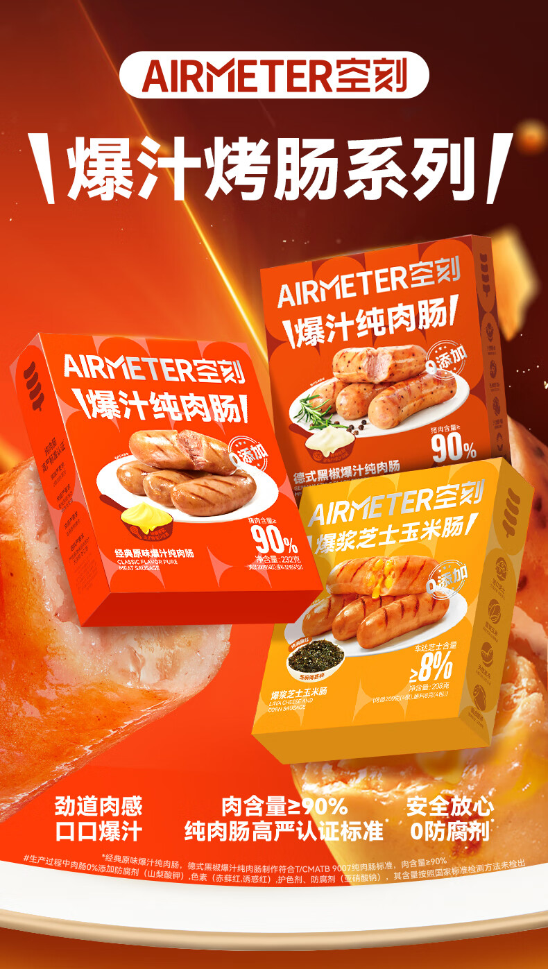 空刻 法式图卢兹风味爆汁纯肉肠 原味+黑胡椒味 464*3盒 混色(单位:组)