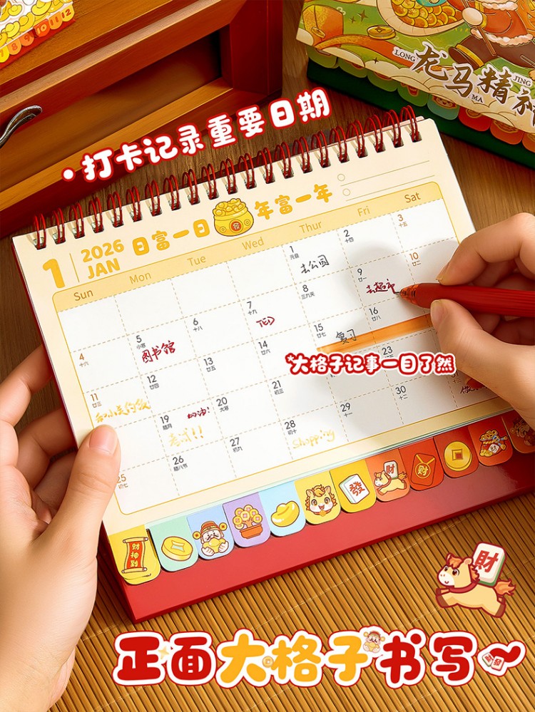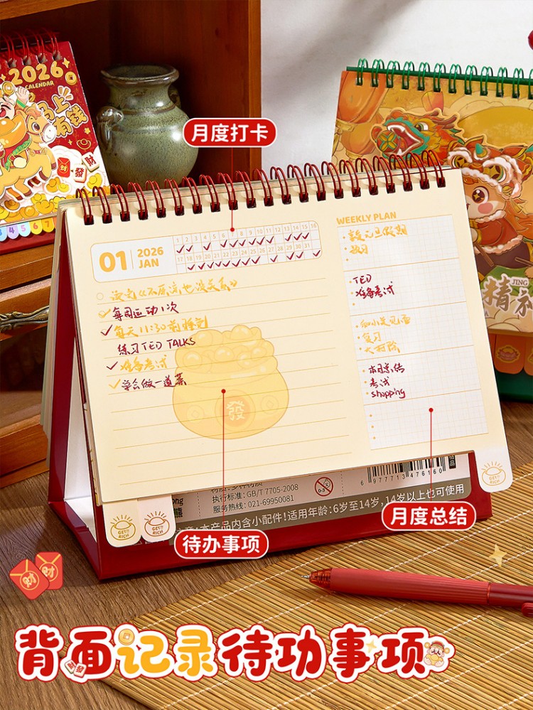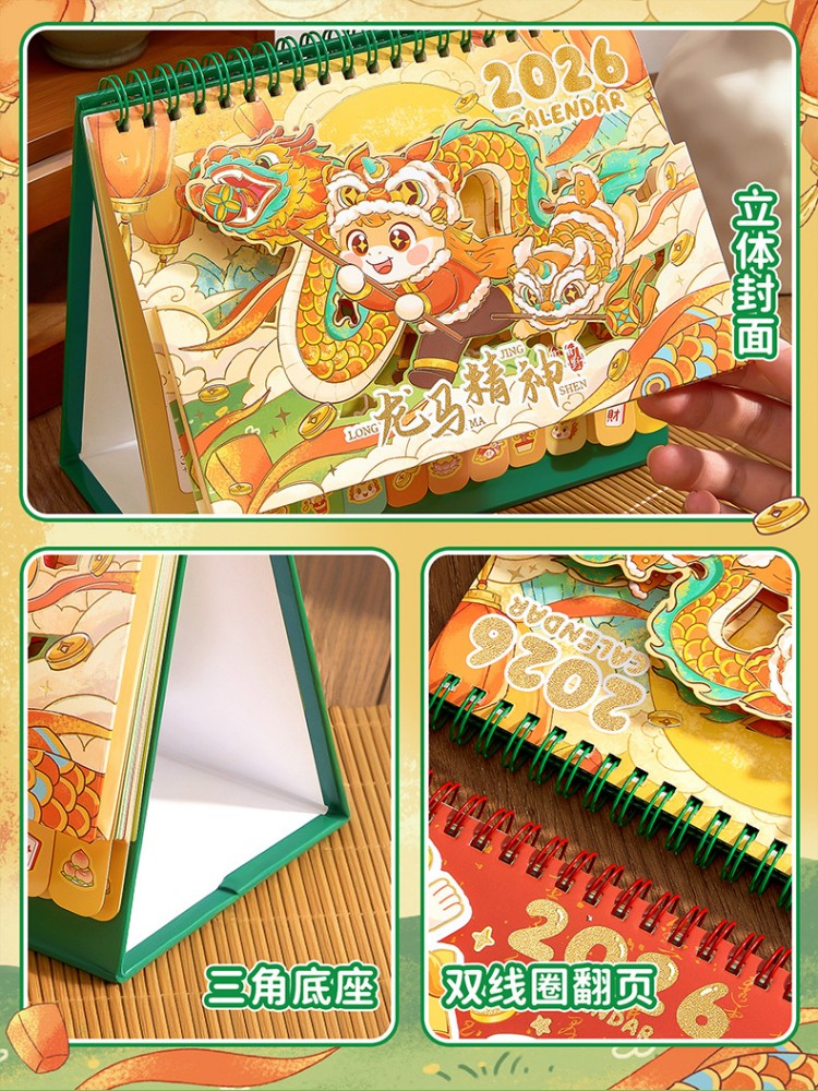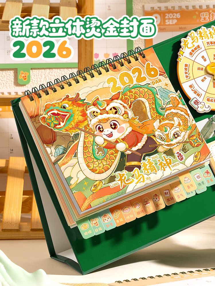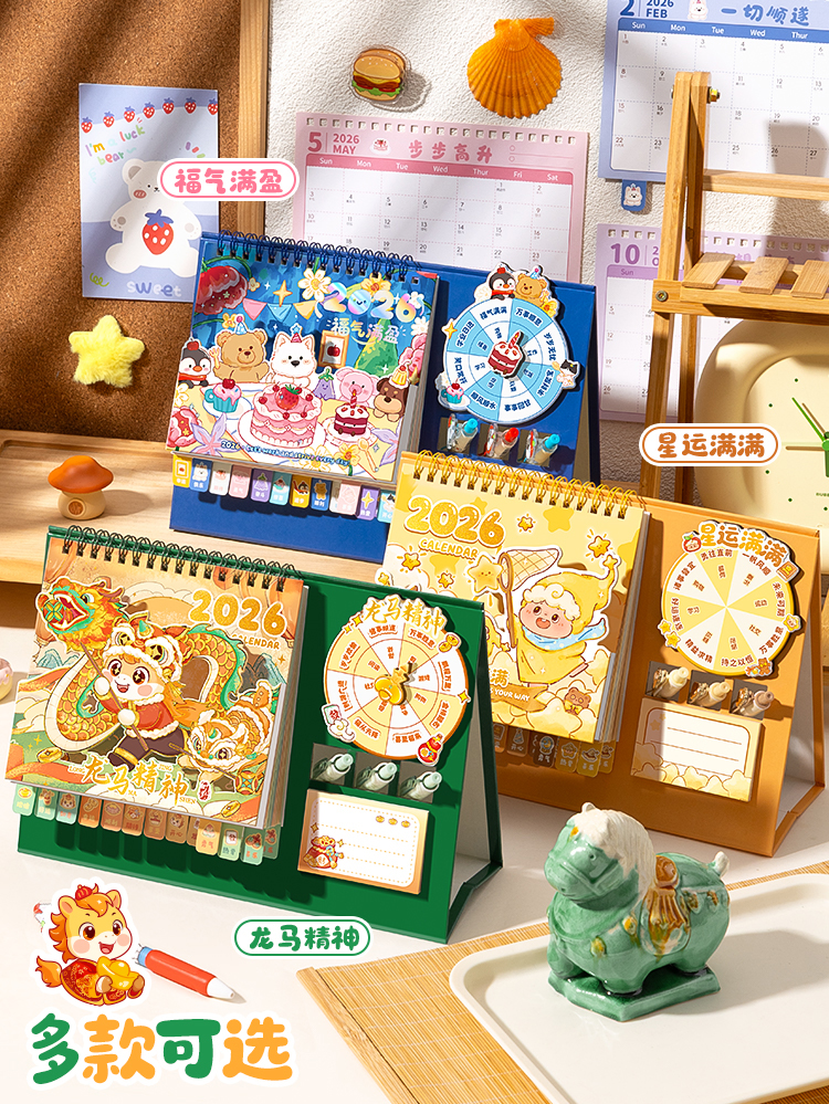 童益星 2026立体台历 大号转盘款福气满盈 180*255mm 蓝色(单位:本)