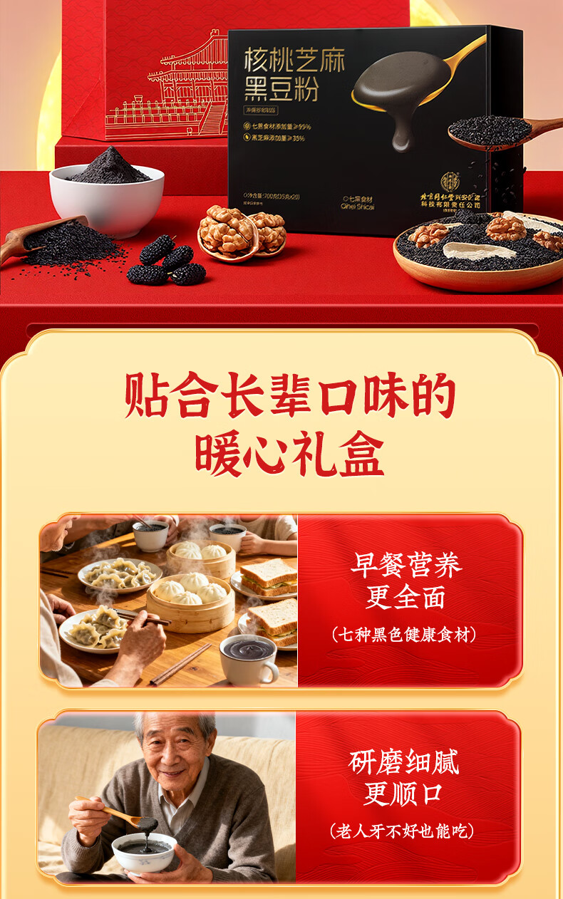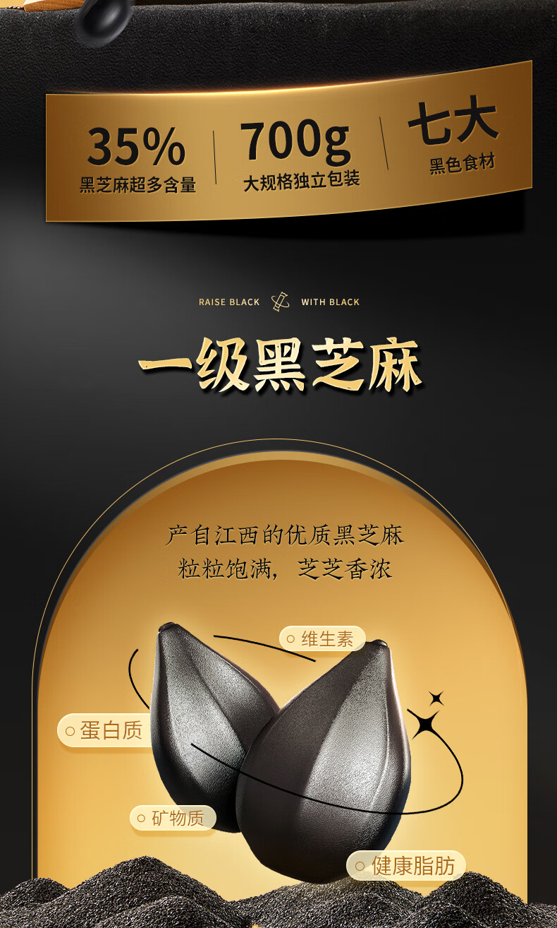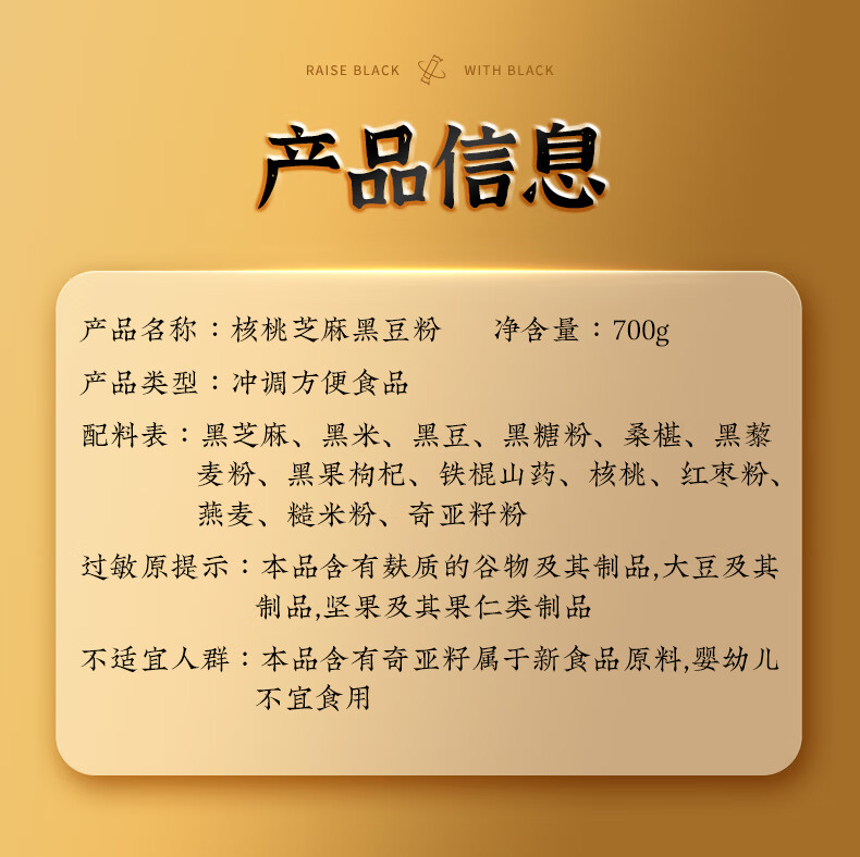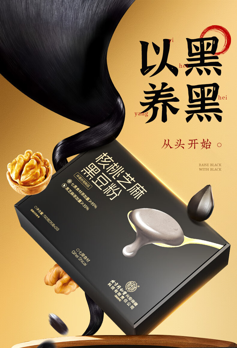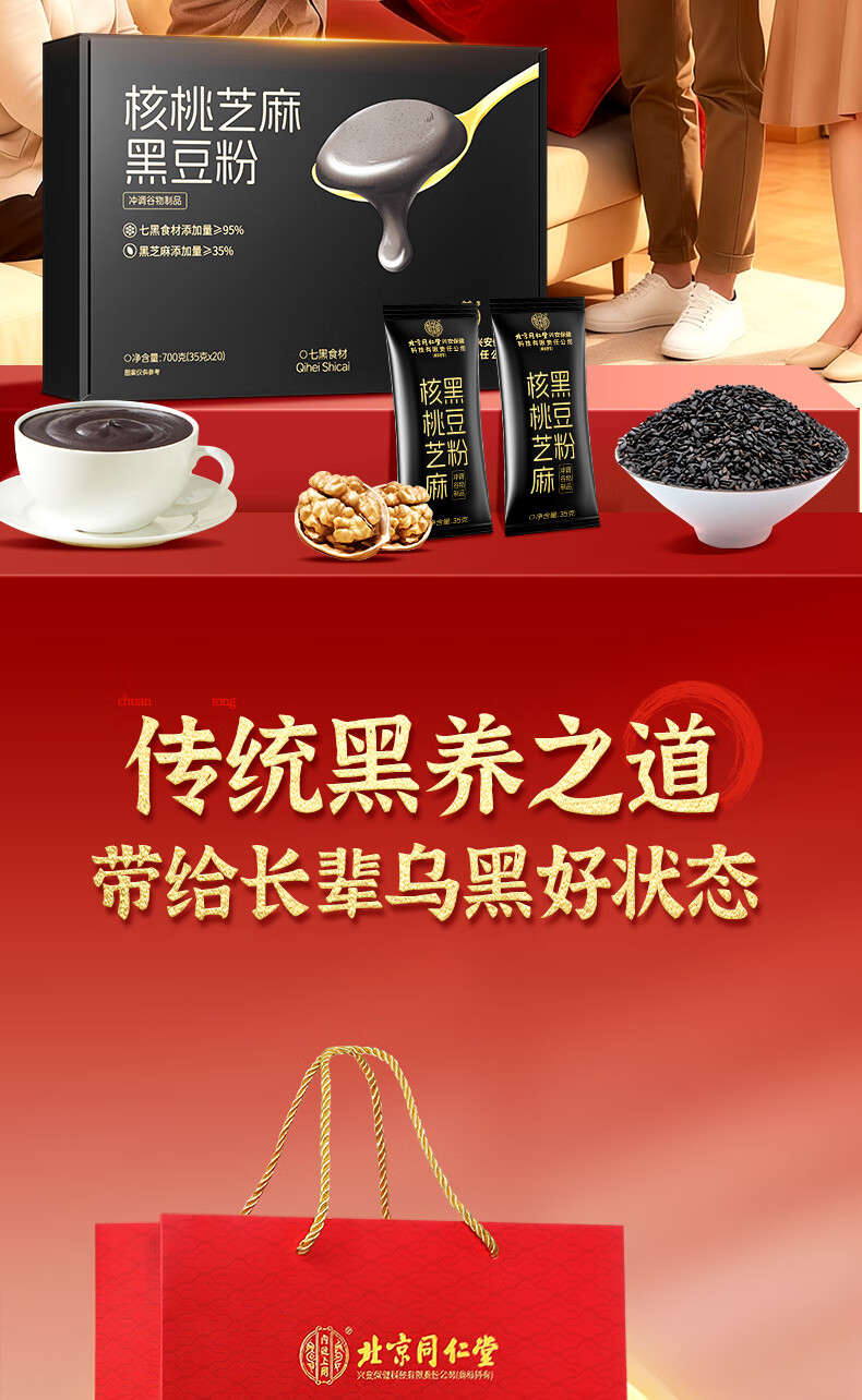 内廷上用 北京同仁堂核桃芝麻黑豆粉 即食无蔗糖 700g(35g*20) 黑色(单位:盒)