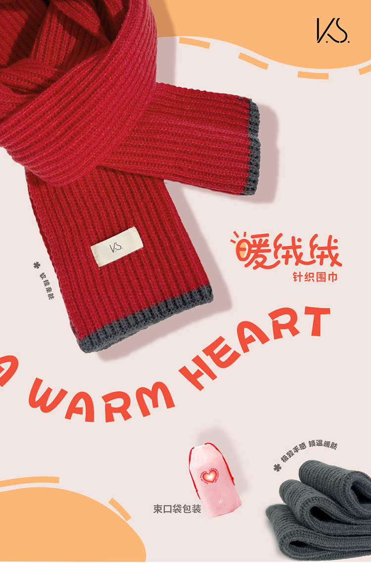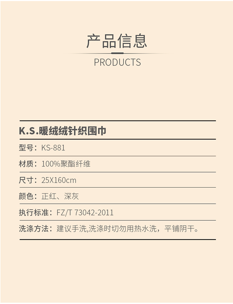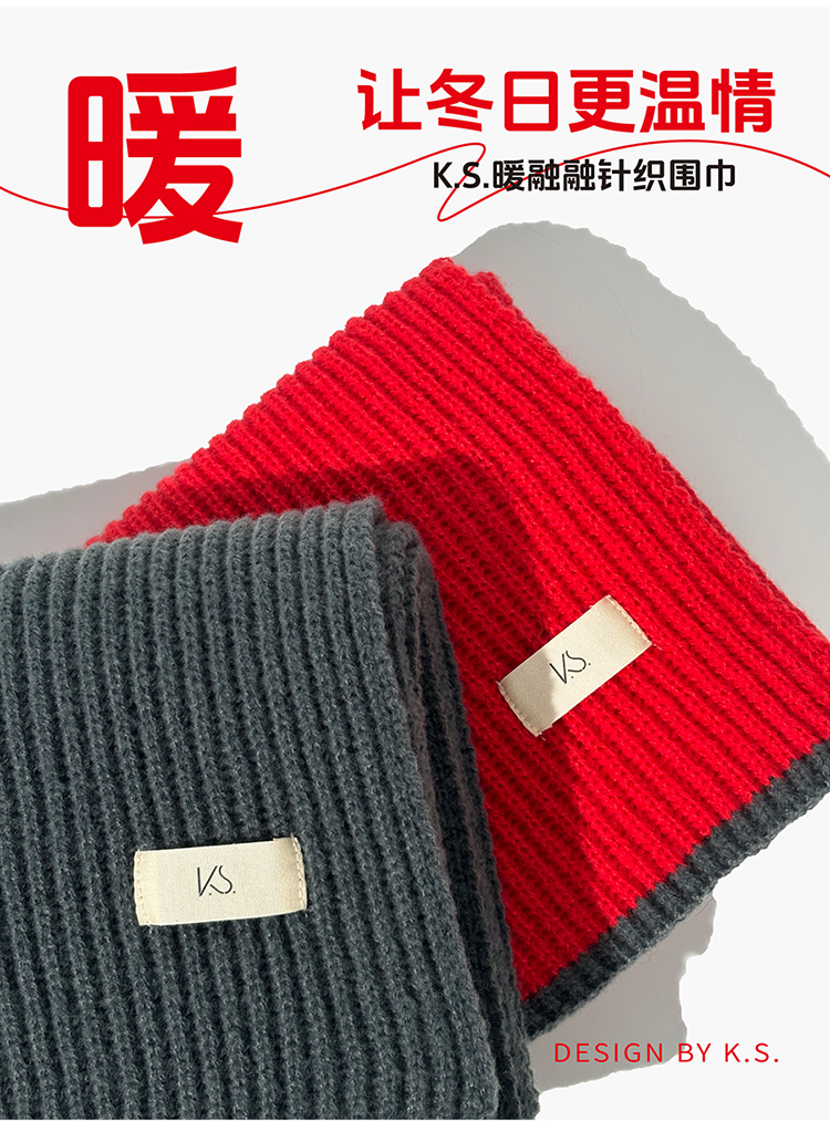 K.S. 暖绒绒针织围巾 KS-881 25*160cm 浅灰色(单位:条)