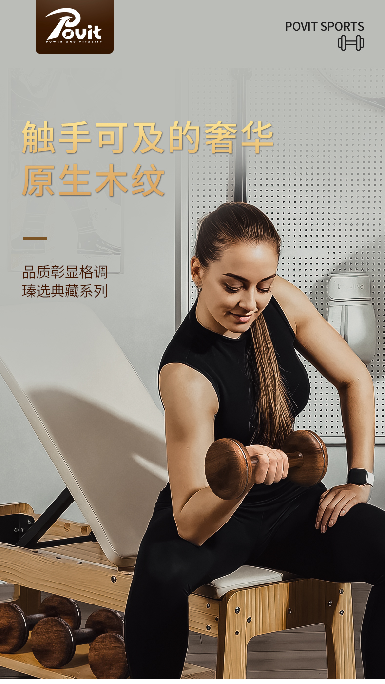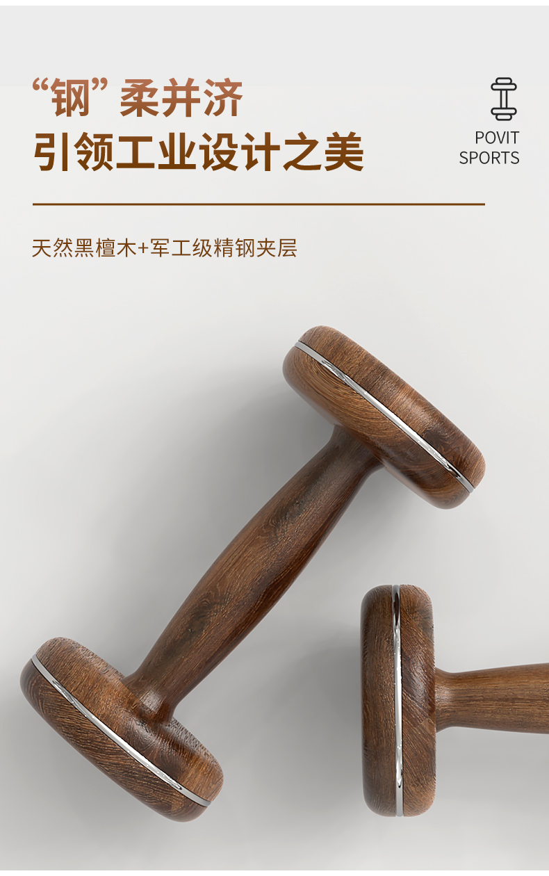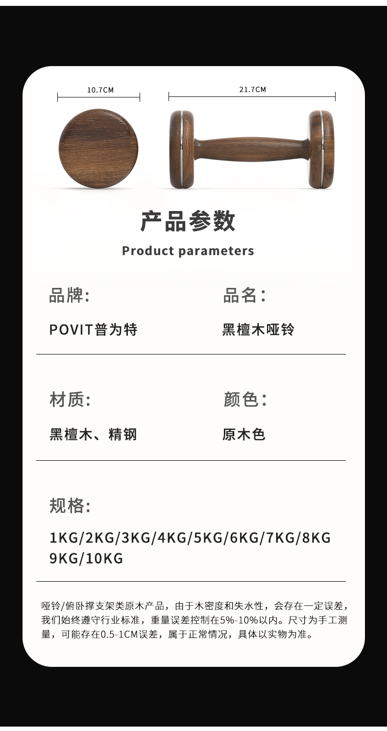 普为特(POVIT) 黑檀木高端哑铃男女通用健身运动收藏级商务礼品 P-276 3kg*2 褐色(单位:套)