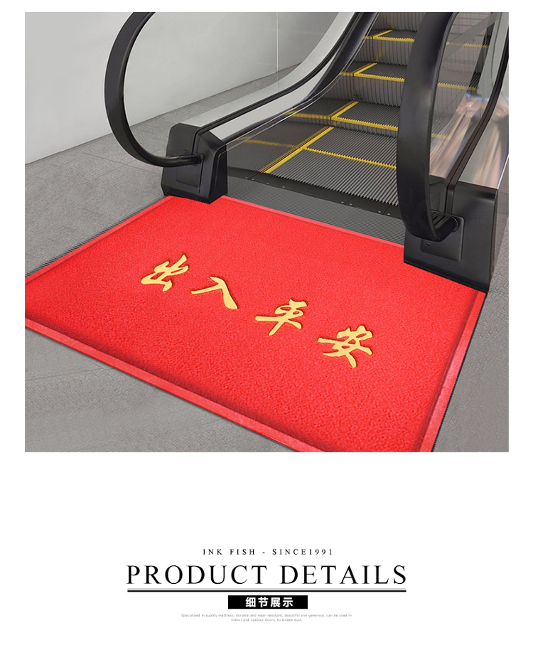 墨斗鱼 出入平安地垫80*120cm家用特厚门垫物业进门口入户防滑垫垫子红色3681单位:张 红色