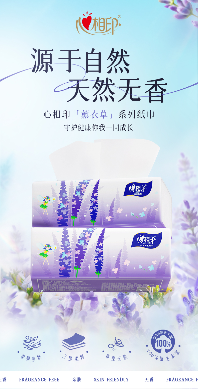心相印 商用(薰衣草)三层塑装面巾纸 24DT100 24包 白色(单位:箱)