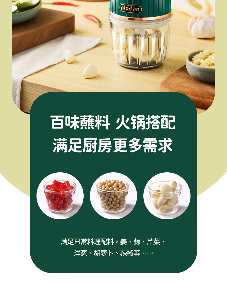 浦利顿(PLODON) 多功能电搅拌料理机 PLD-FS-830 10叶 单刀 单杯 绿色(单位:台)