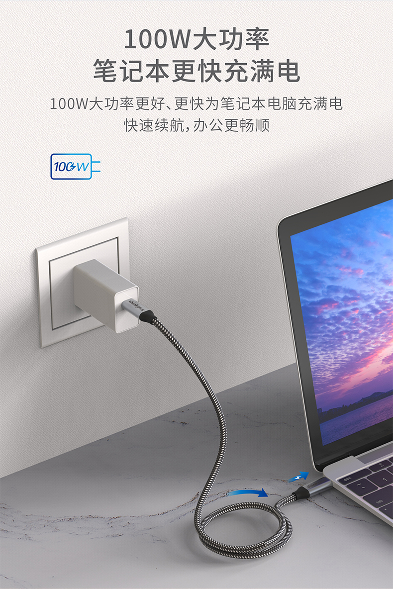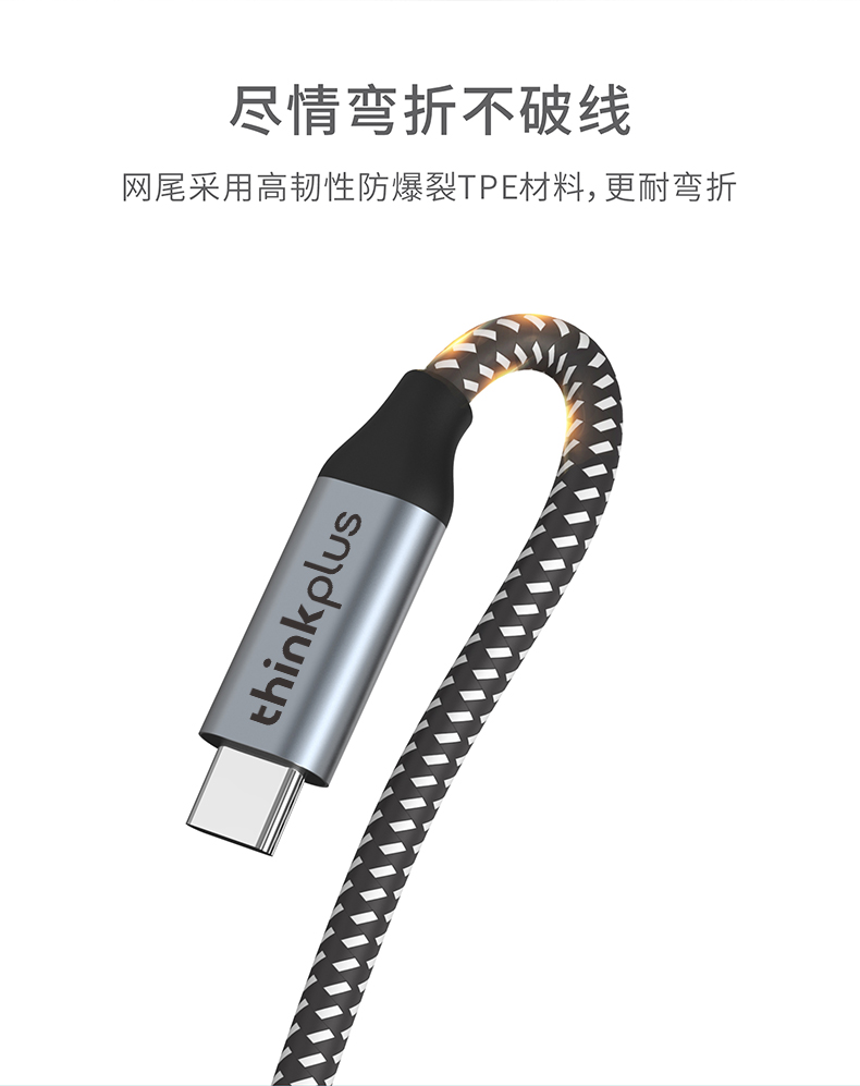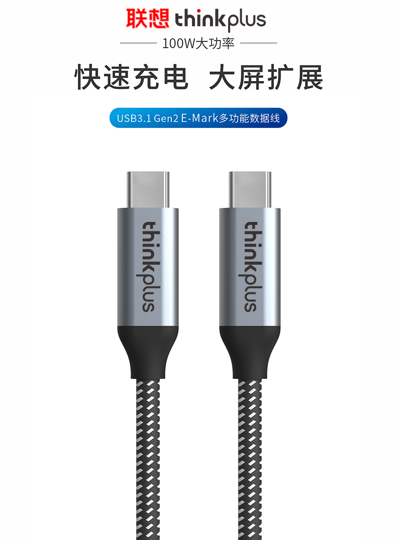 联想 ThinkPlus Type-C数据线5A100W快充PD充电线4K视频线CC515H 条 黑色