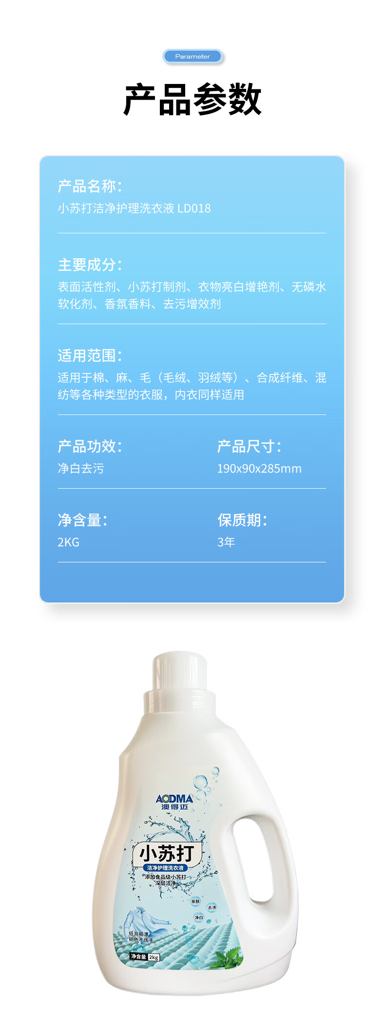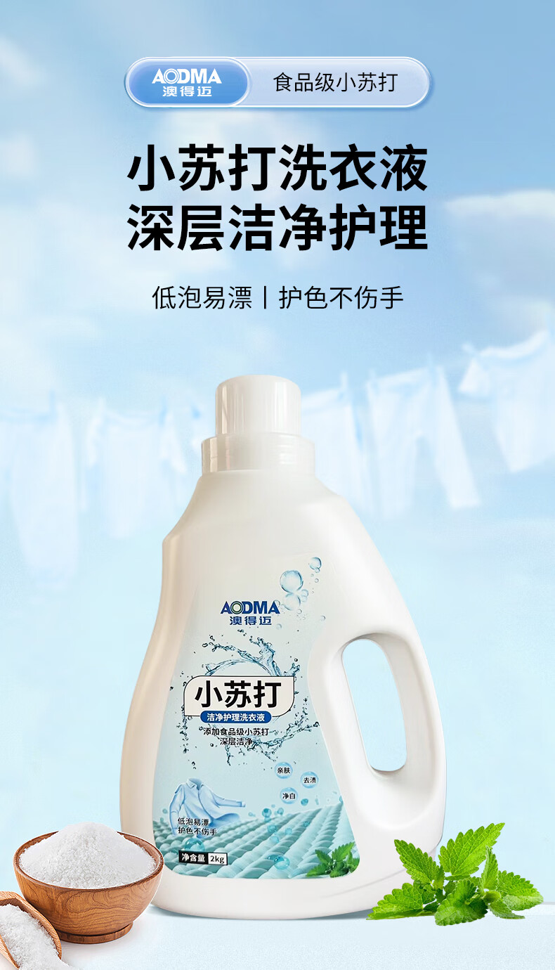 澳得迈(AODMA) 小苏打洁净护理洗衣液 LD-018 2kg 混色(单位:瓶)