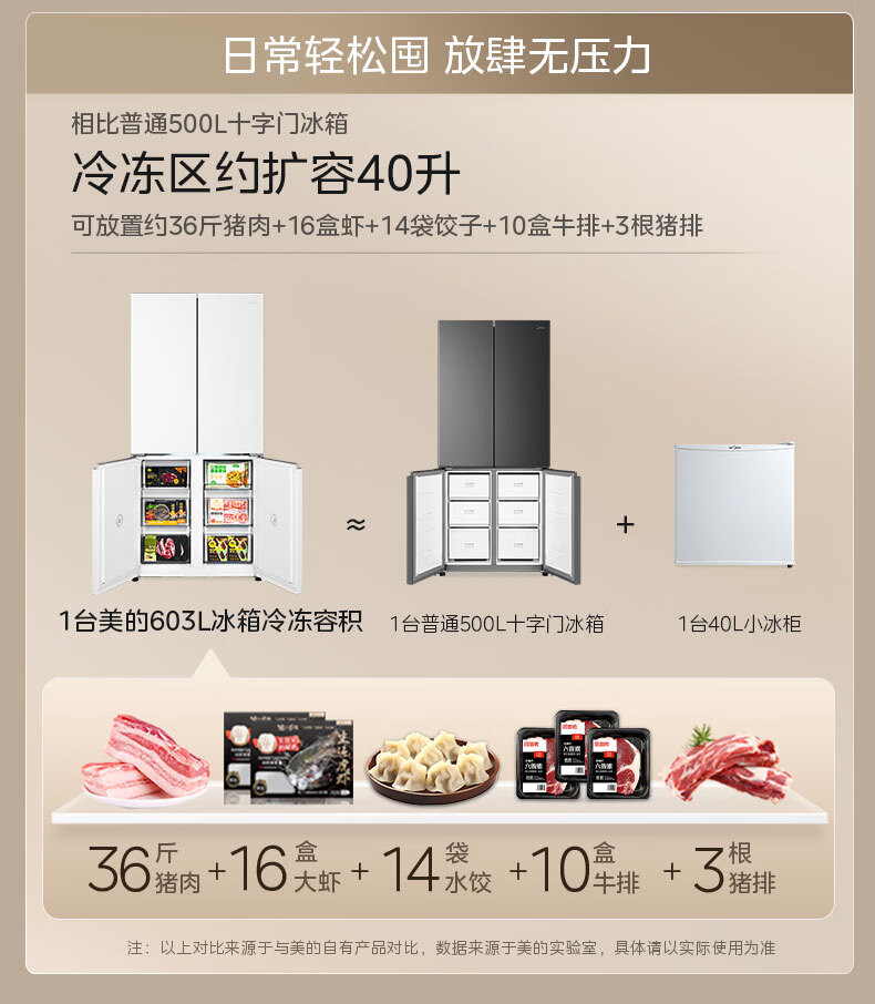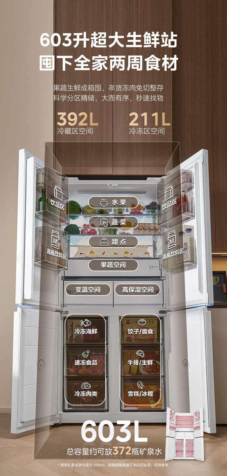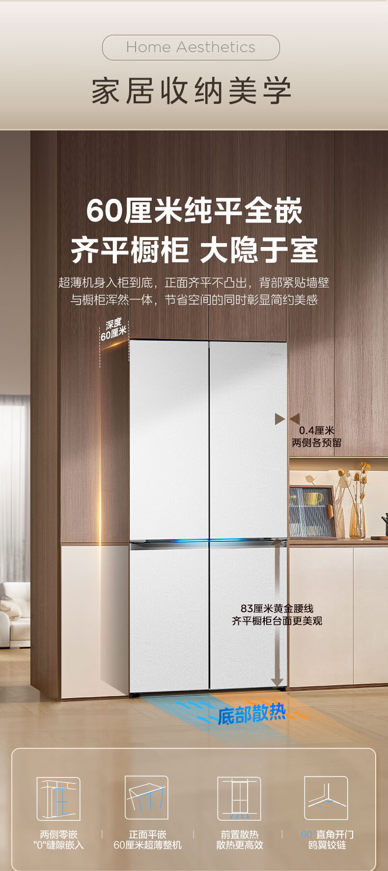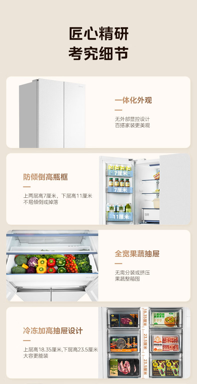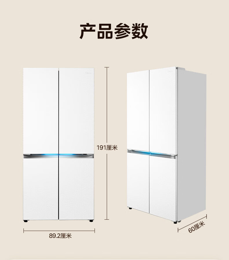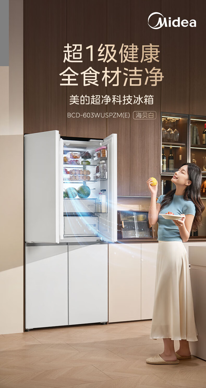 美的(Midea) 十字门冰箱 BCD-603WUSPZM(E) 603升 海贝白(单位:台)