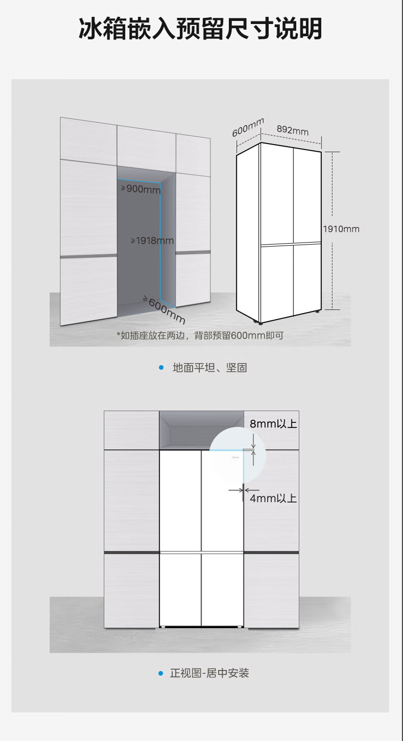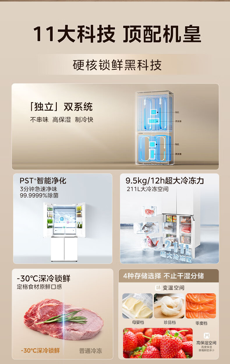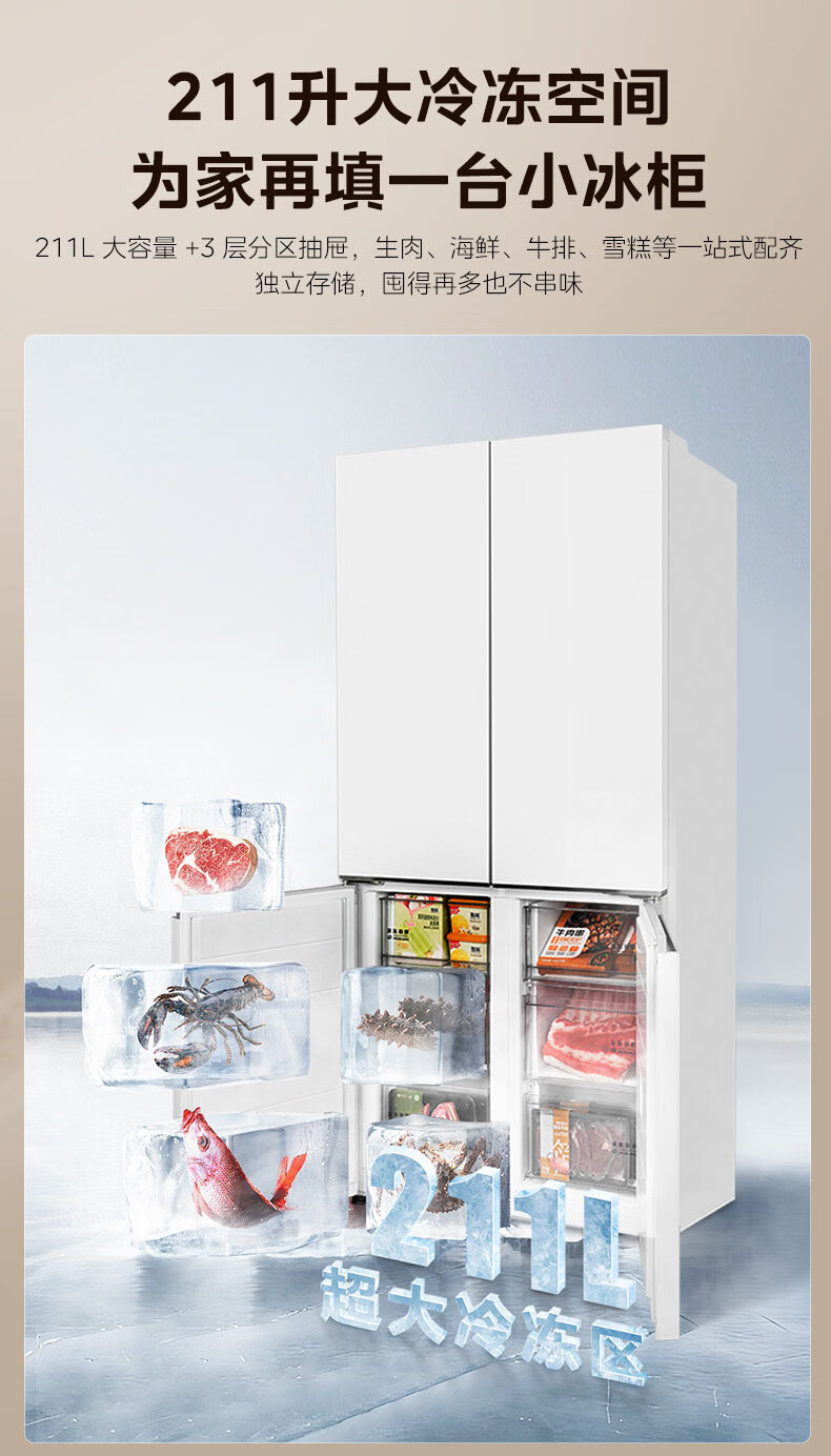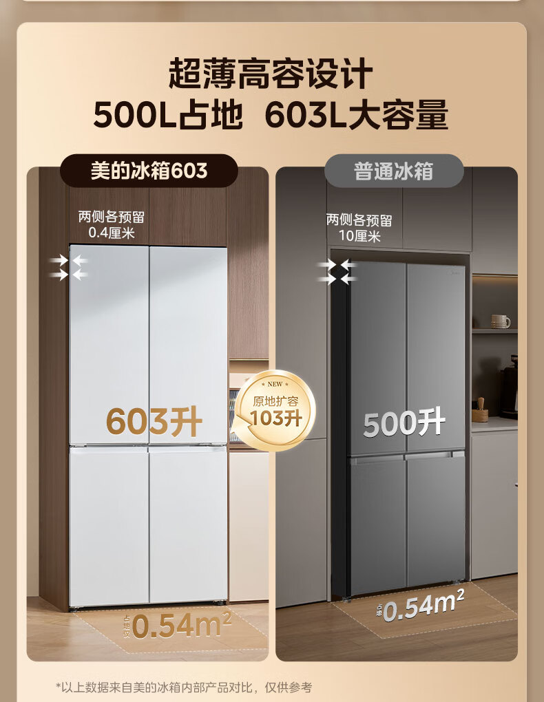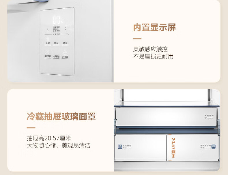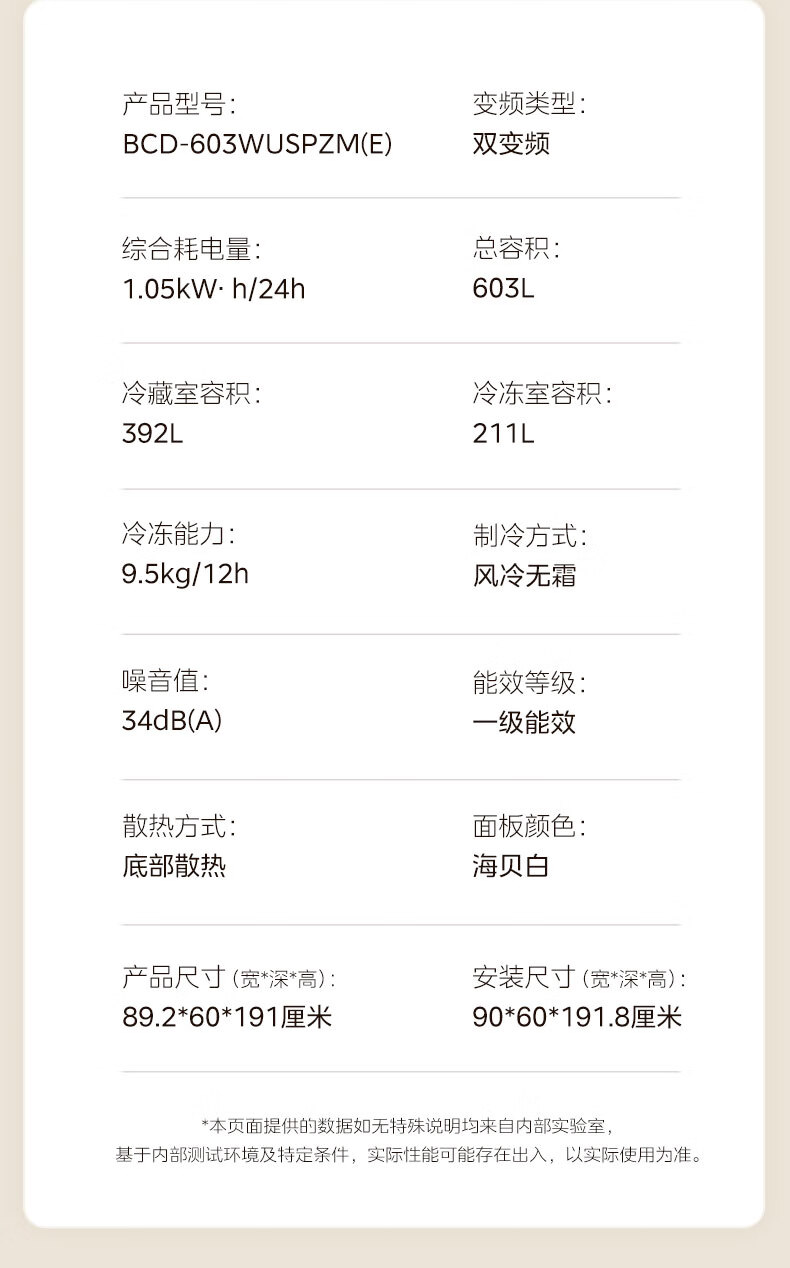 美的(Midea) 十字门冰箱 BCD-603WUSPZM(E) 603升 海贝白(单位:台)