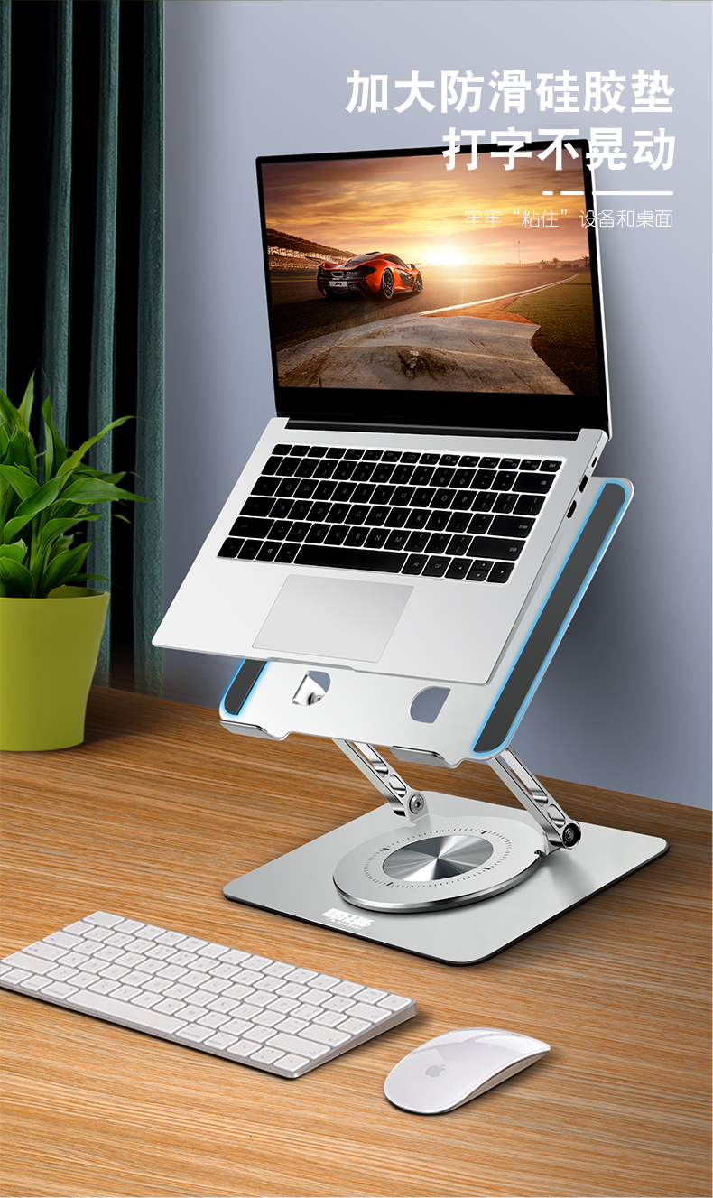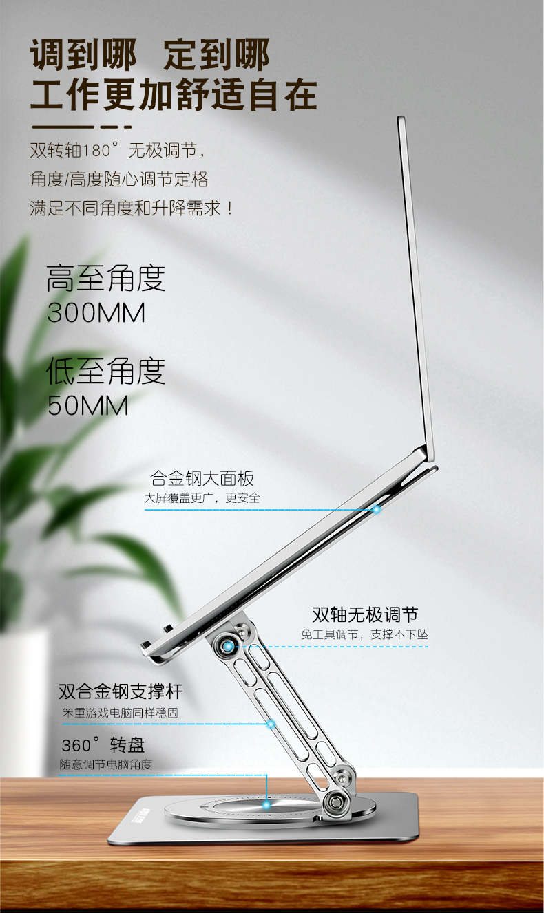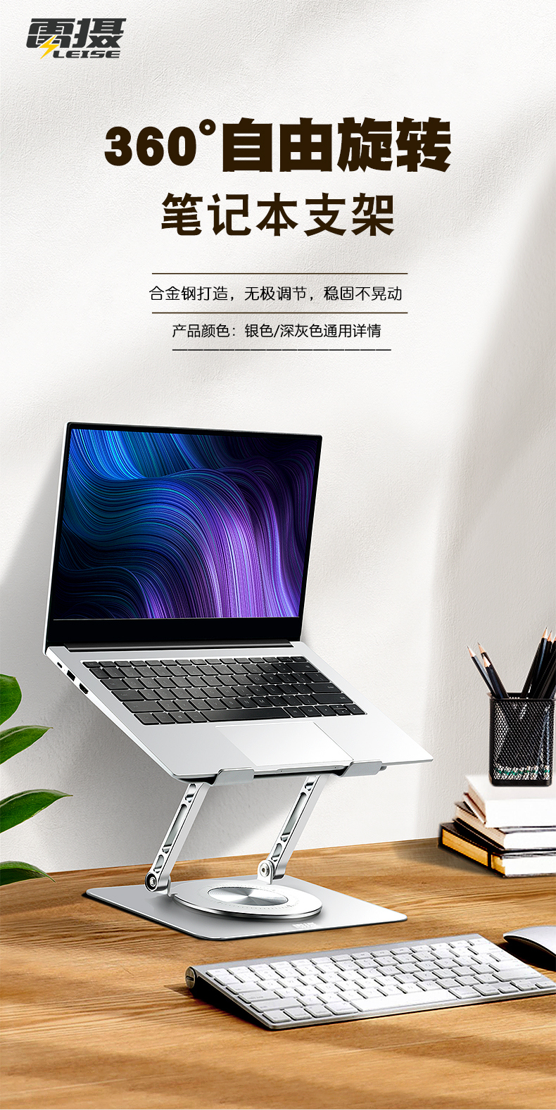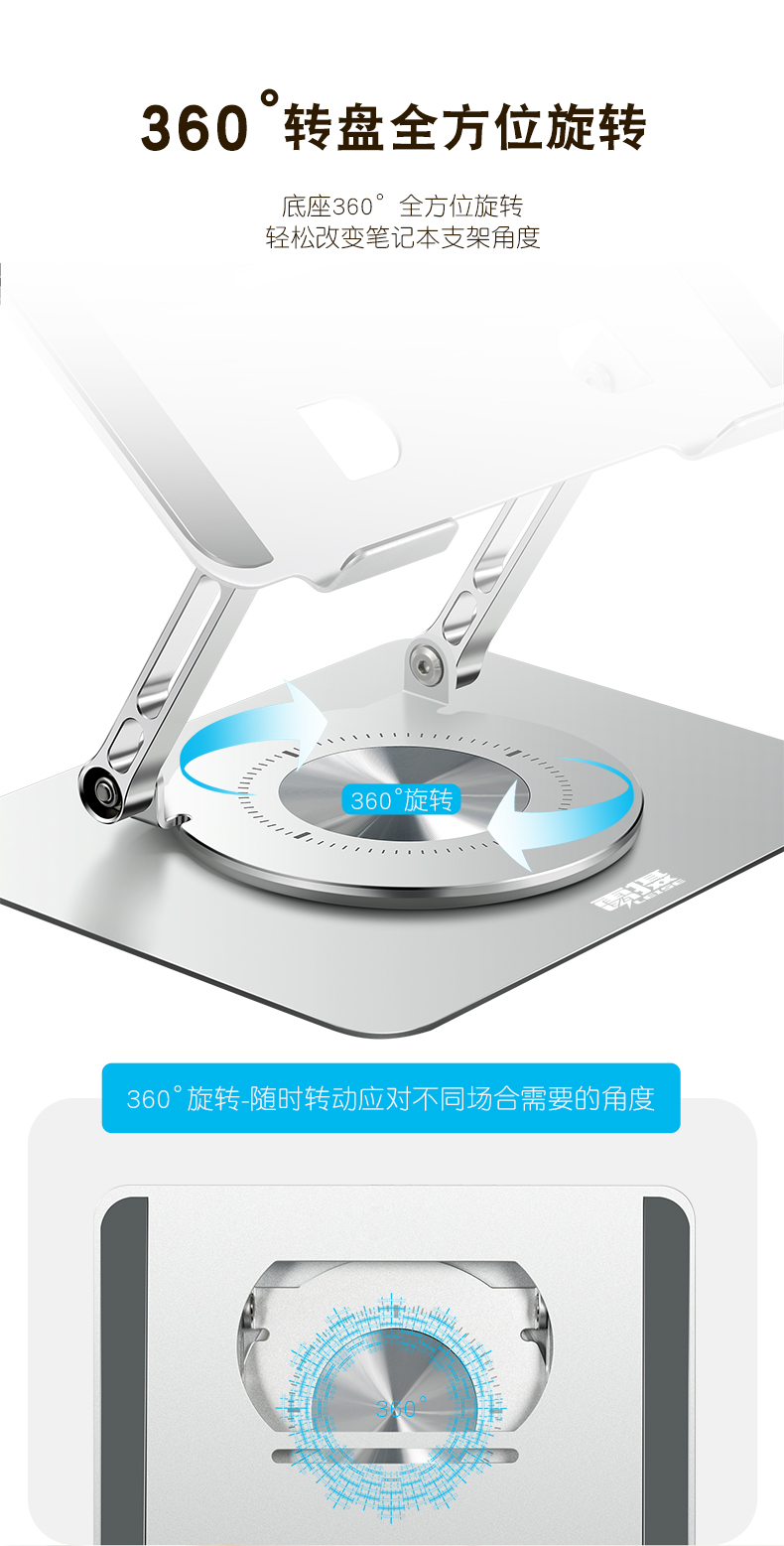 雷摄(LEISE) 笔记本支架 旋转双臂大转盘金属折叠升降立式增高架LS-XT8(单位:件)) 精钢蓝