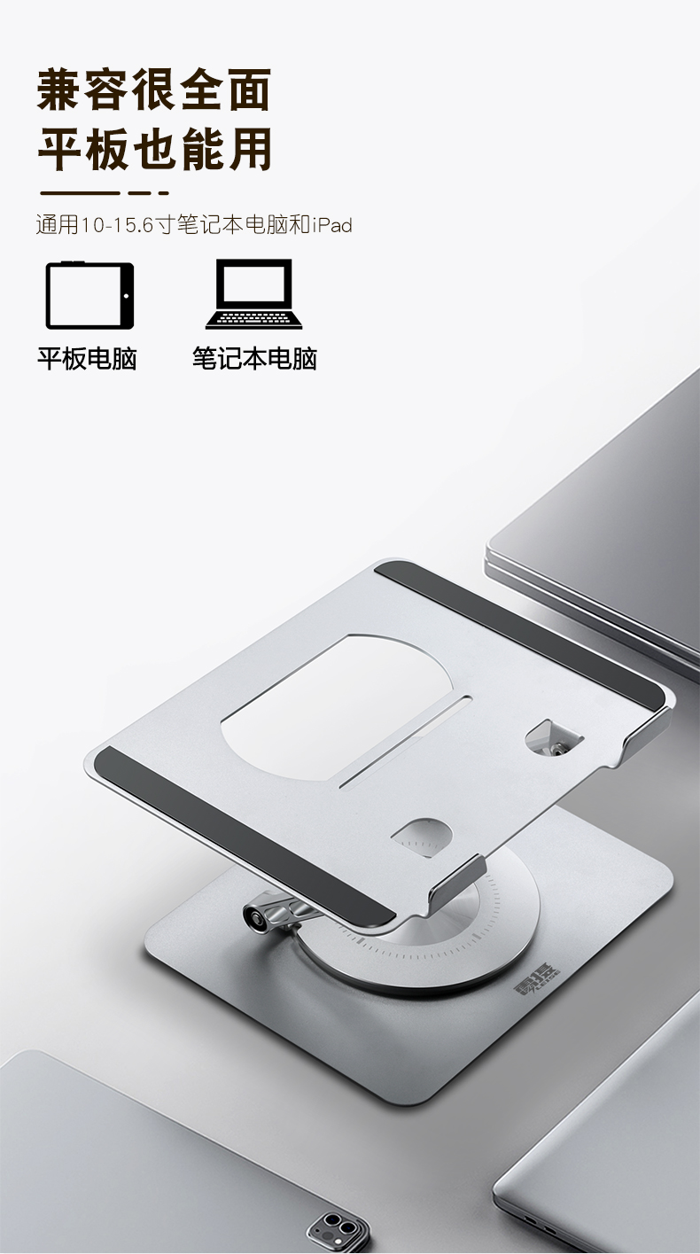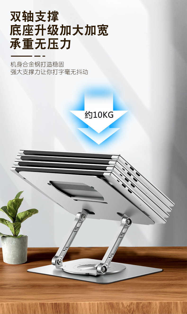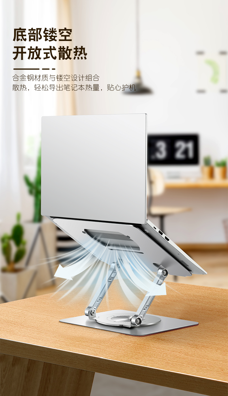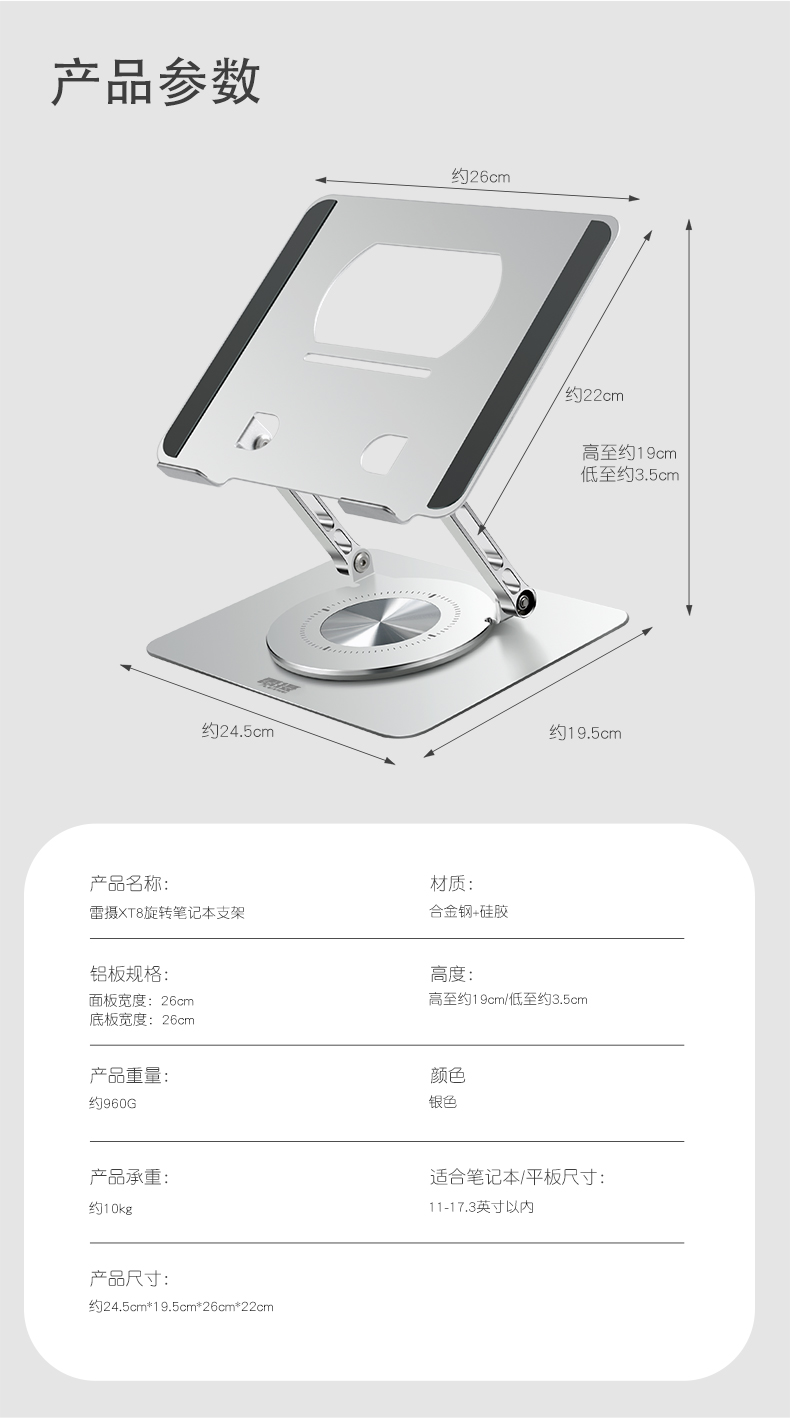 雷摄(LEISE) 笔记本支架 旋转双臂大转盘金属折叠升降立式增高架LS-XT8(单位:件)) 精钢蓝