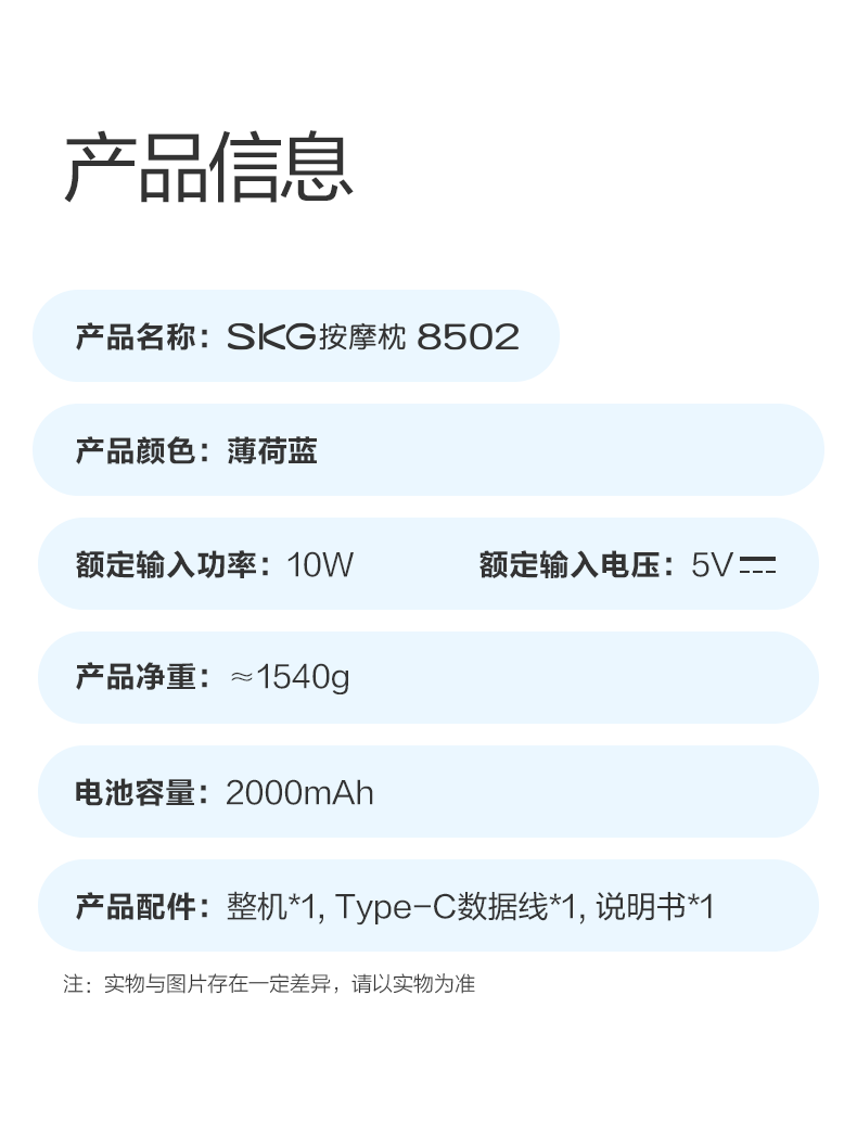 SKG 物理按摩腰靠 8502 10w 蓝色(单位:台)