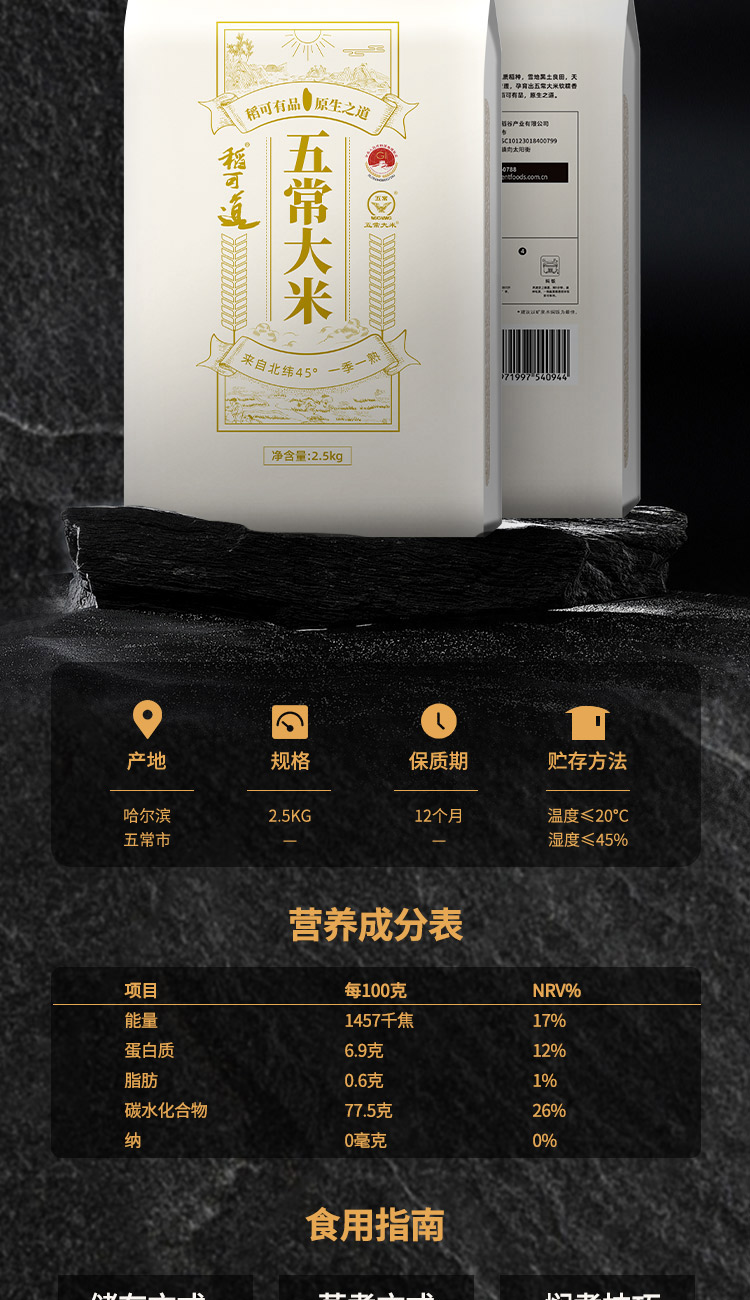稻可道 五常大米 真空包装 2.5kg 白色(单位:袋)
