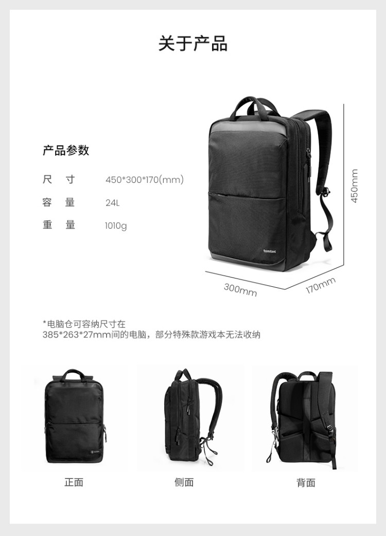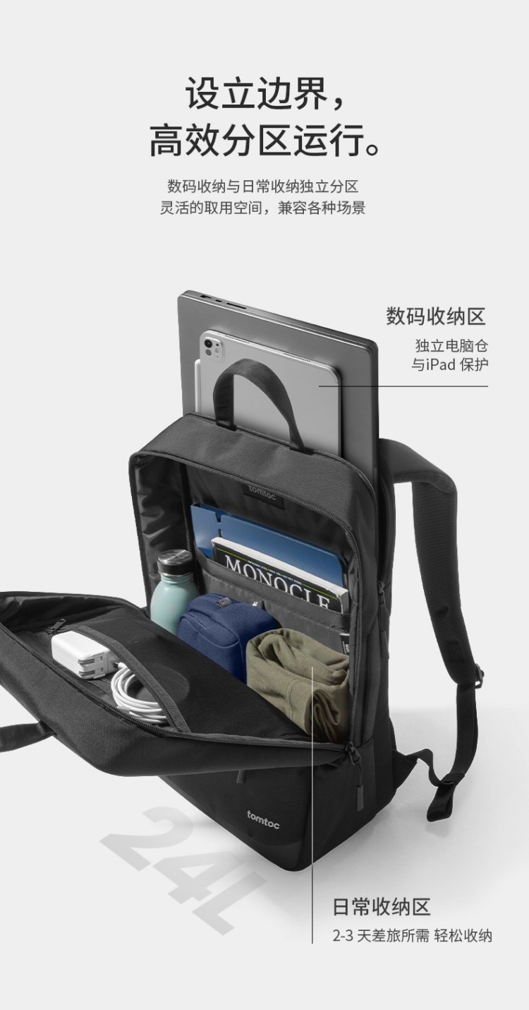 TOMTOC Navigator-立型多仓背包 T71M2D1 15.6 寸 曜石黑(单位:个)