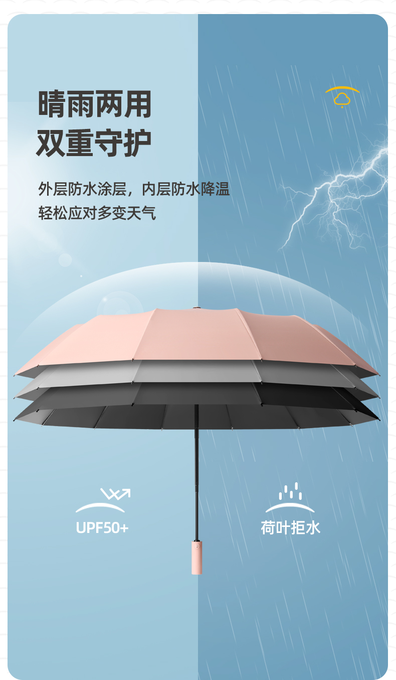 senmoh 自动双段12骨节节收晴雨两用伞 70386 65.0cm*12K 混色(单位:把)