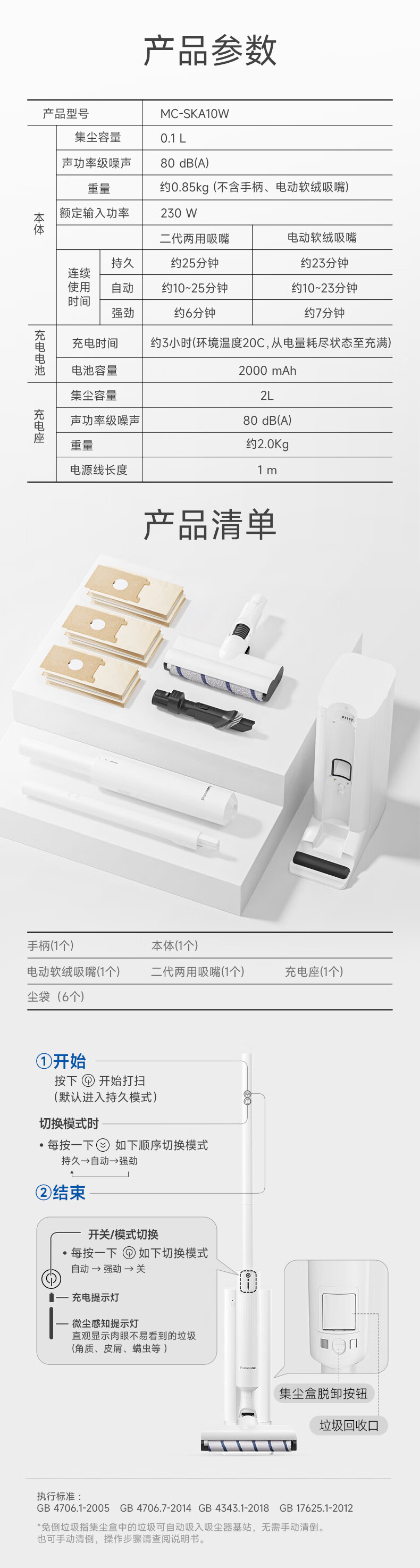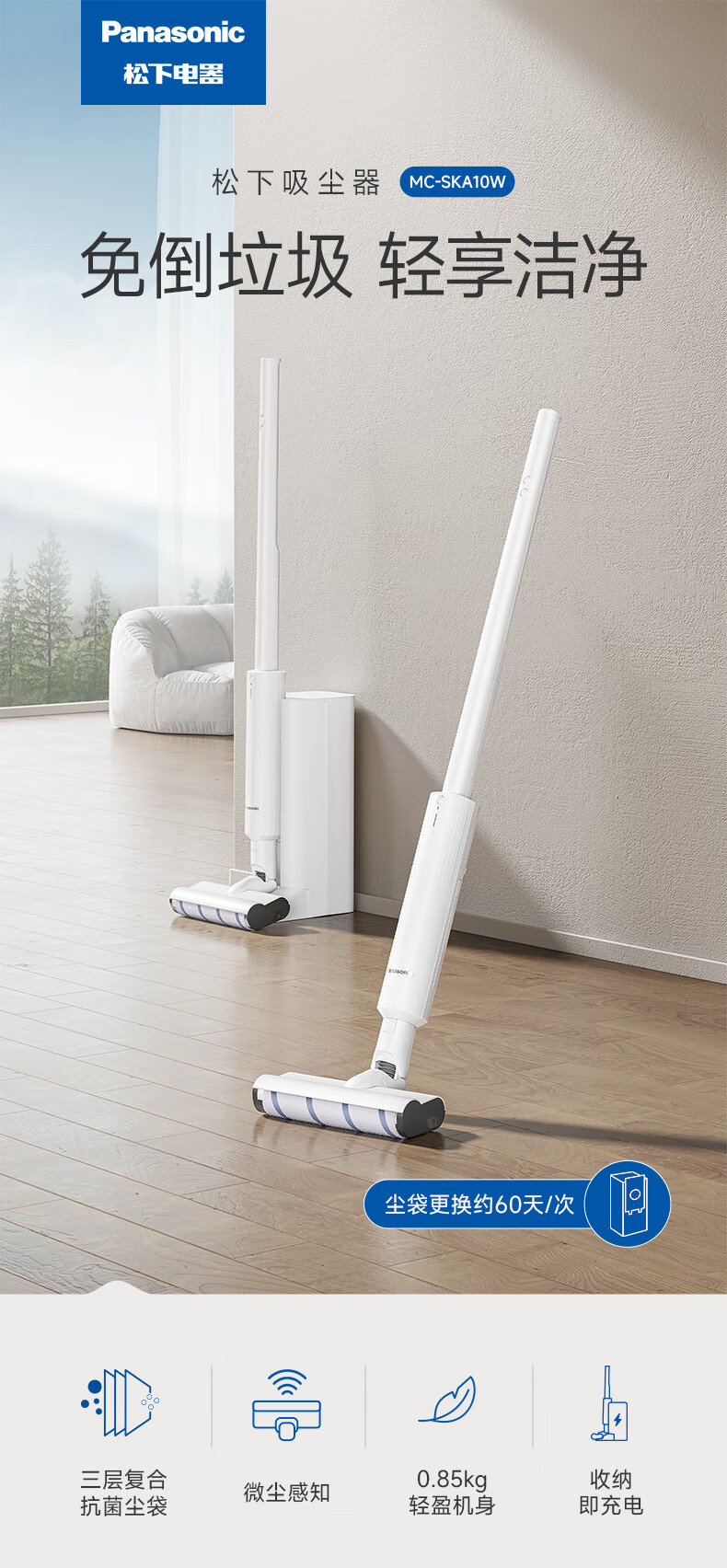 松下(Panasonic) 无线吸尘器 MC-SKA10W 250x76x1165mm 白色(单位:台)