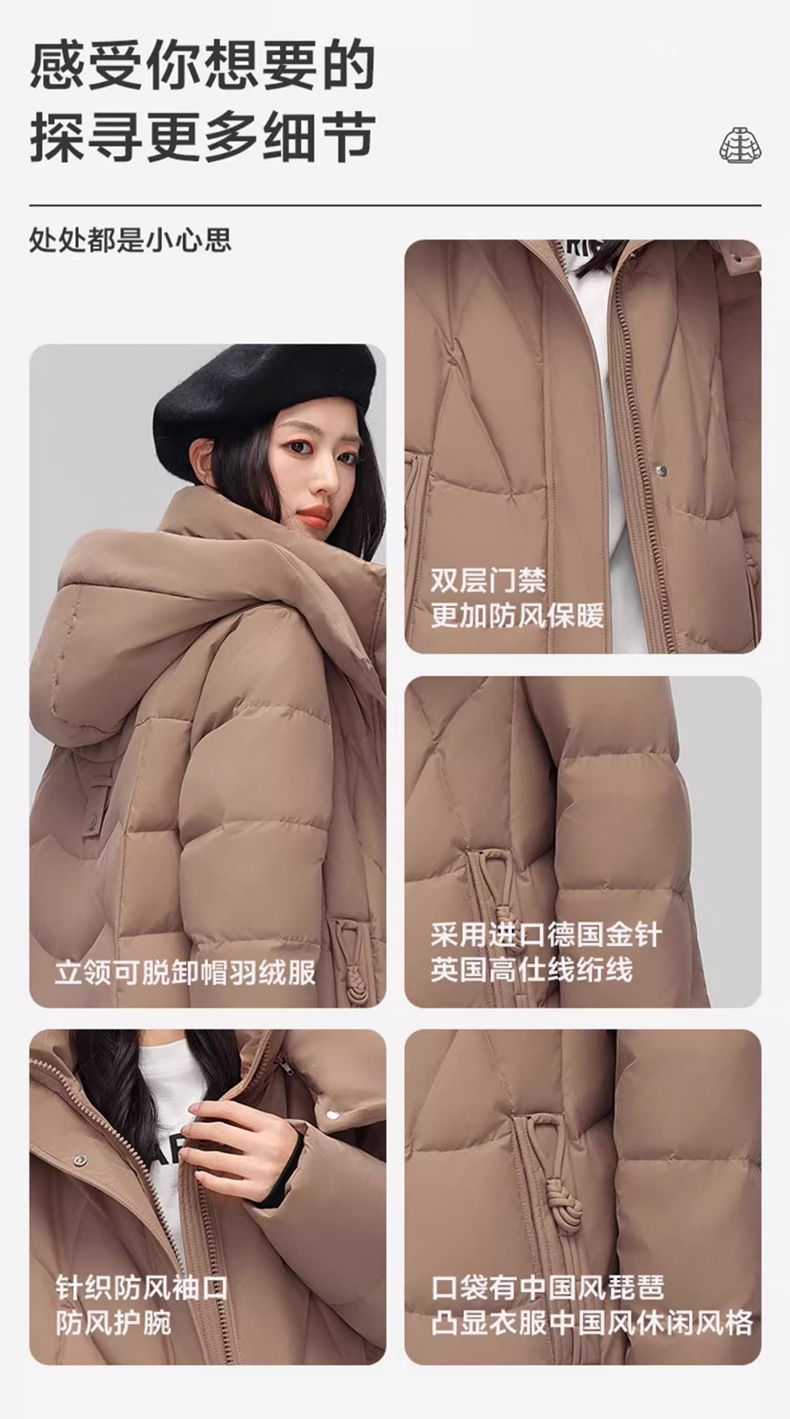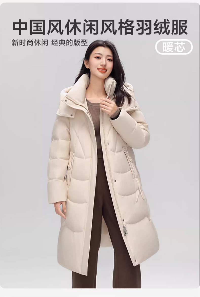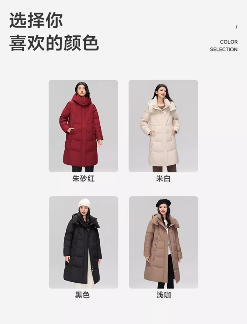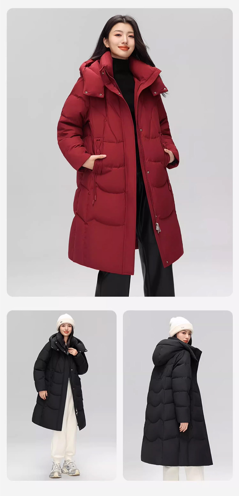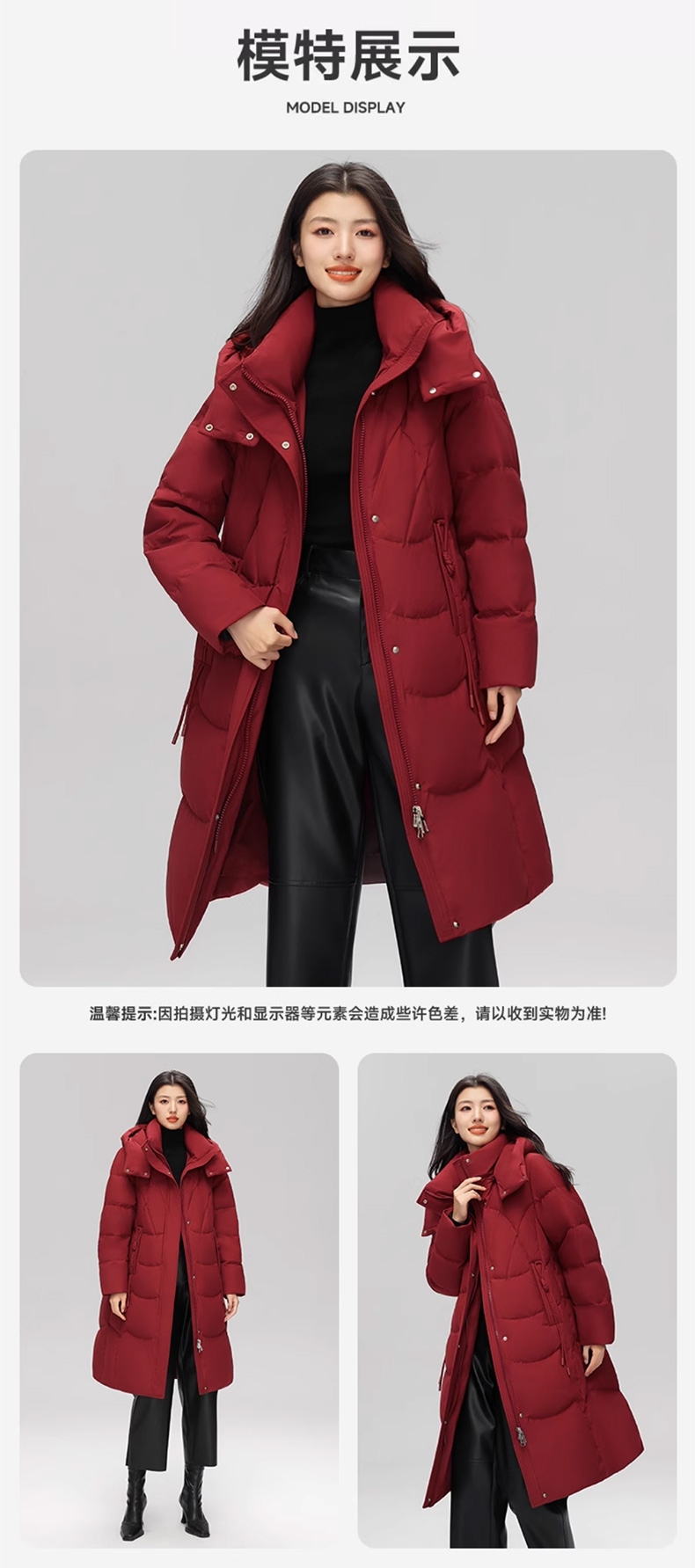 丰讯 女式中长款过膝冬季气质大牌中国风保暖连帽外套 FXYL6889 羽绒服 M 朱砂红(单位:件)