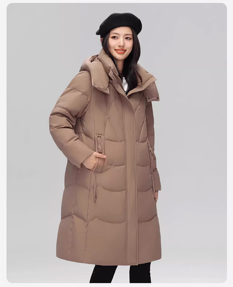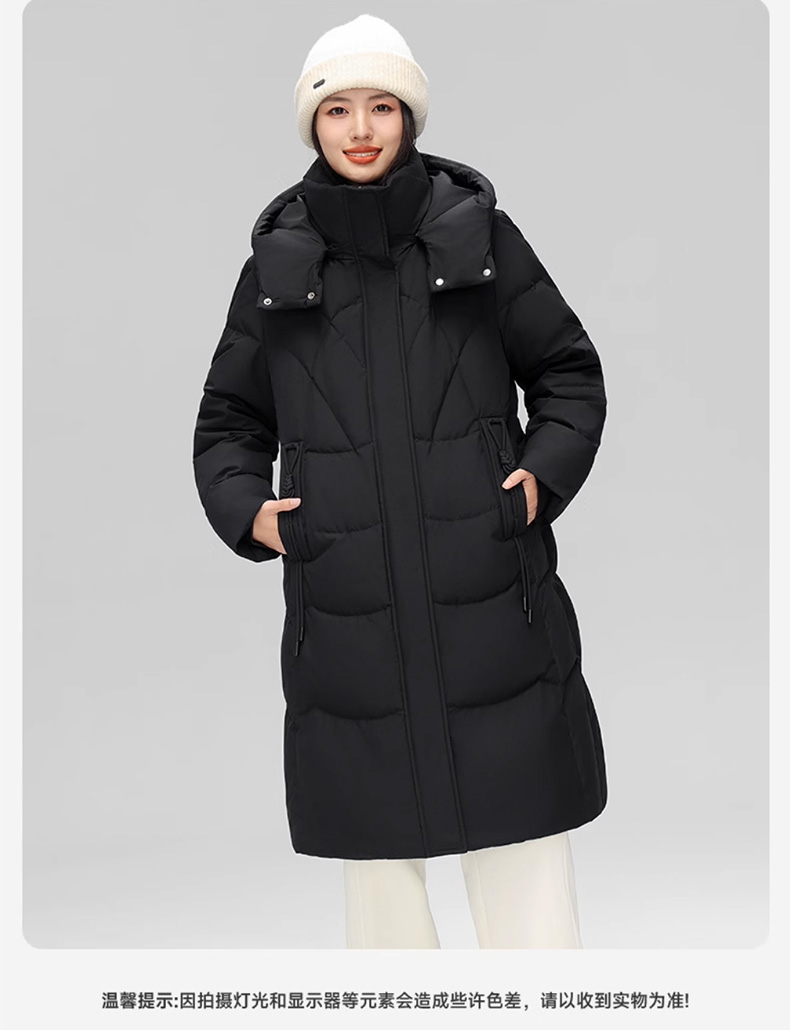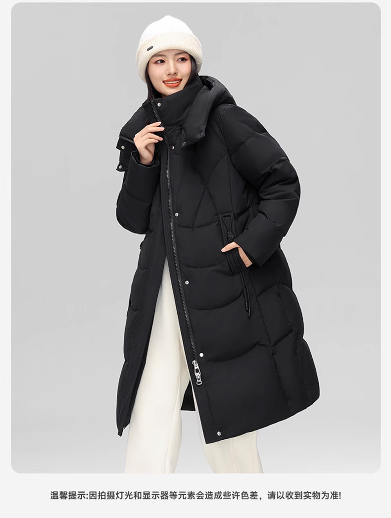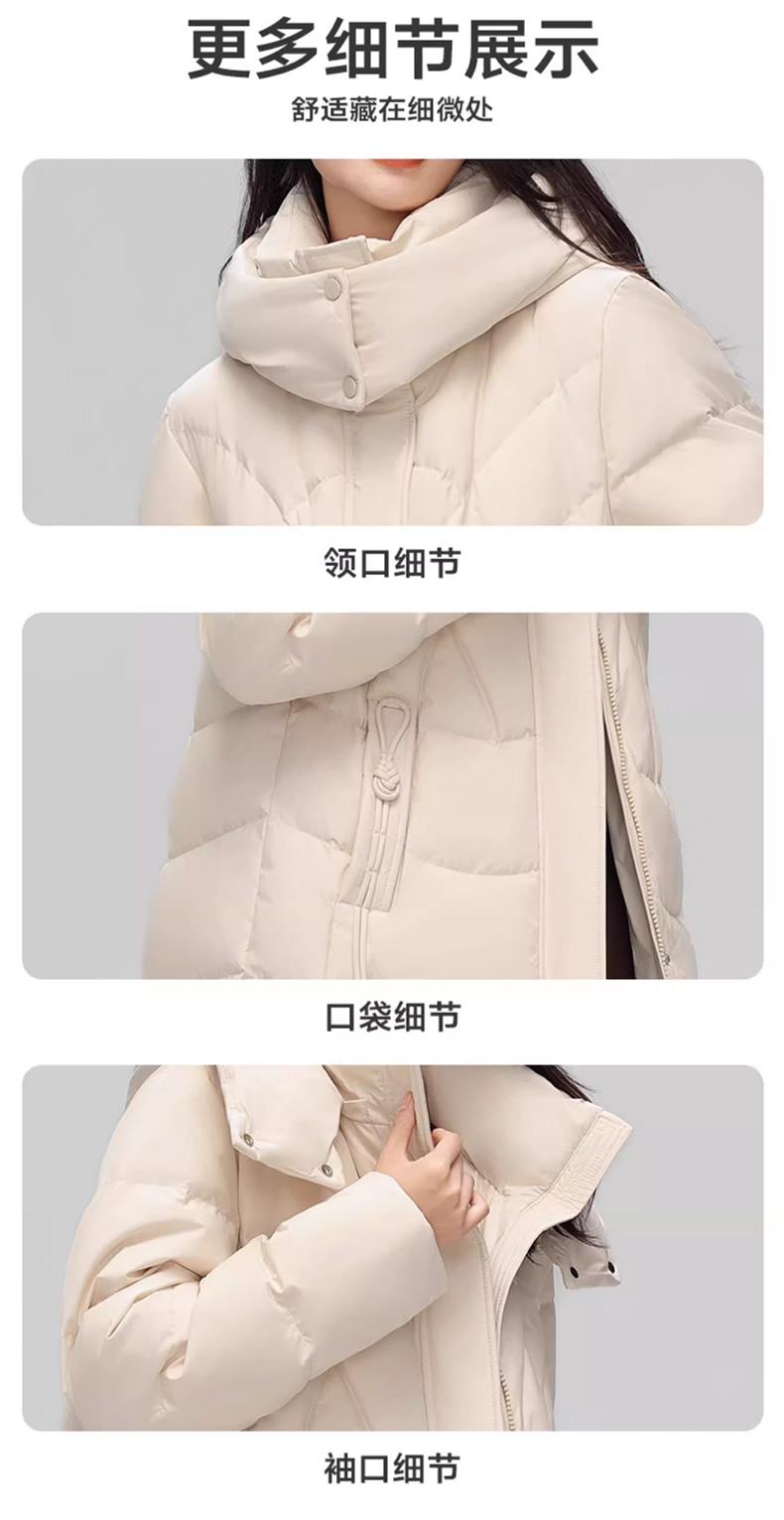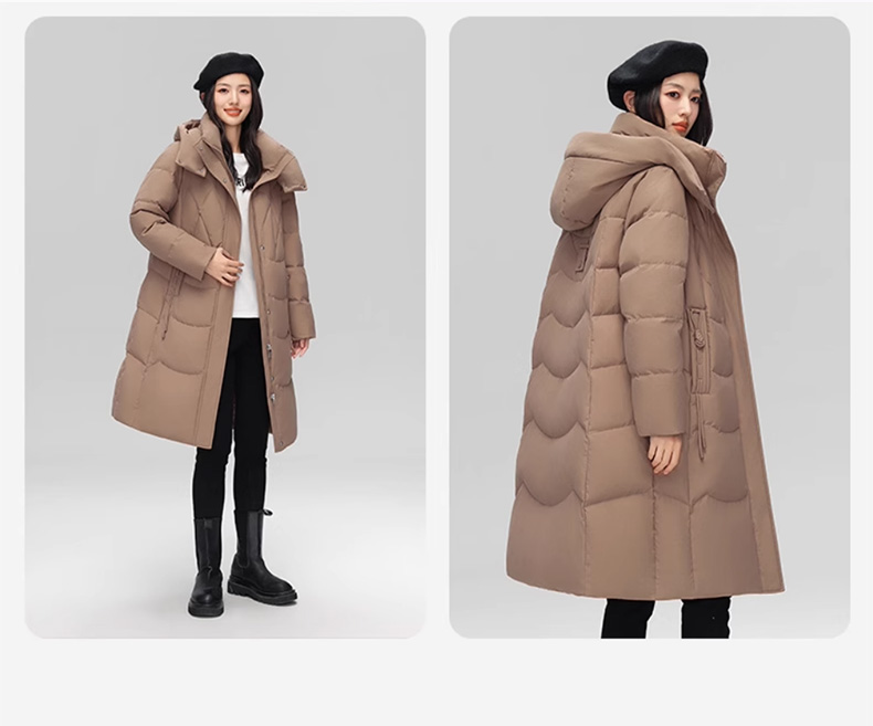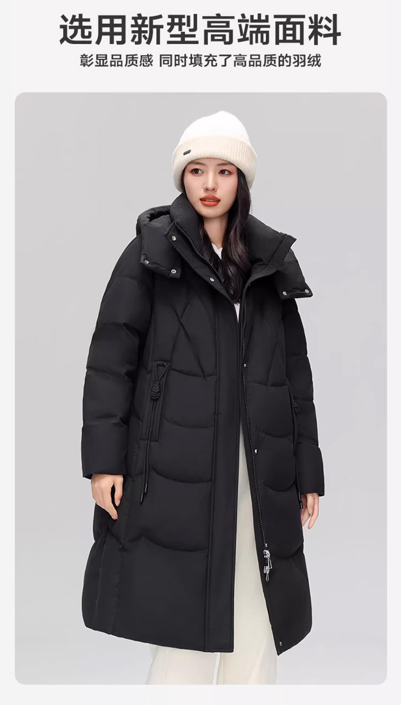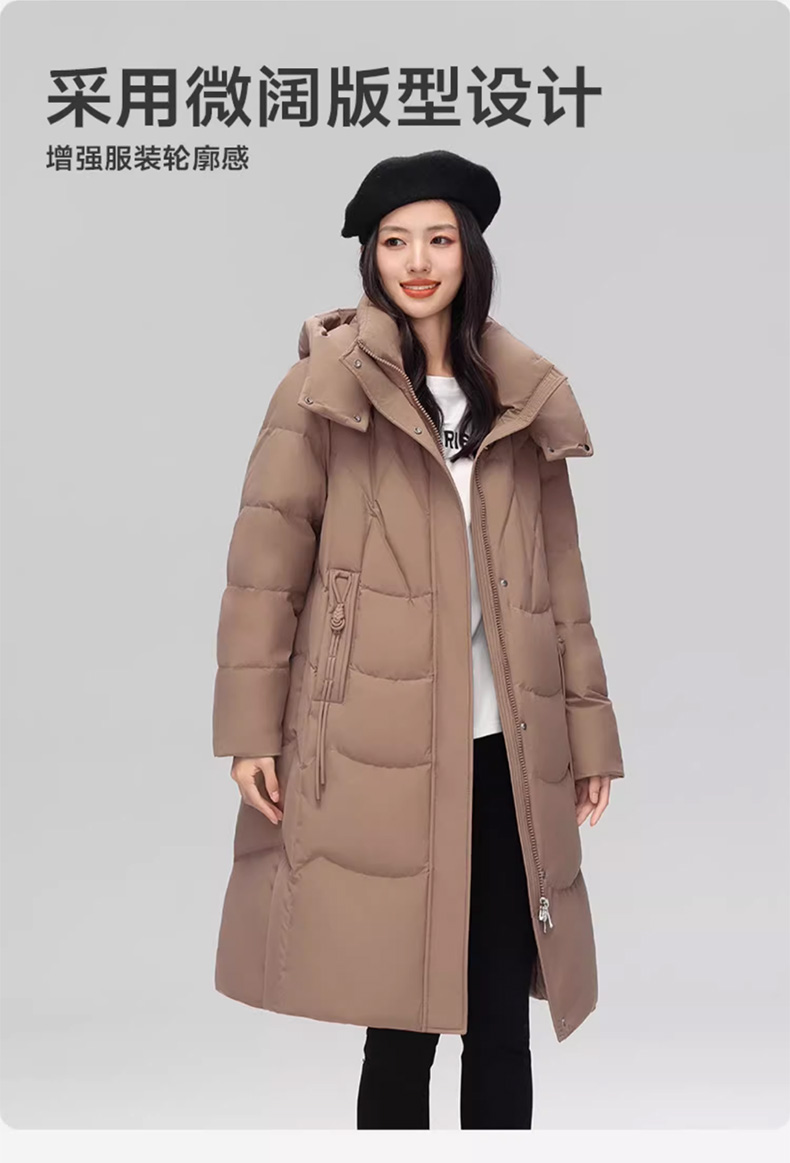 丰讯 女式中长款过膝冬季气质大牌中国风保暖连帽外套 FXYL6889 羽绒服 M 朱砂红(单位:件)