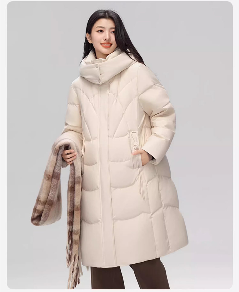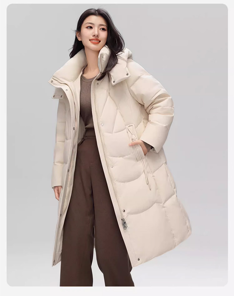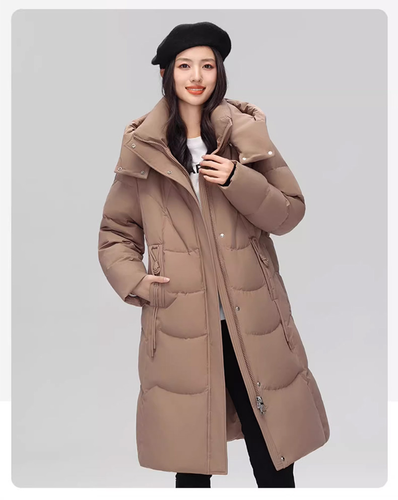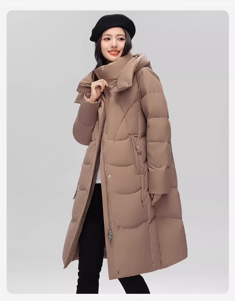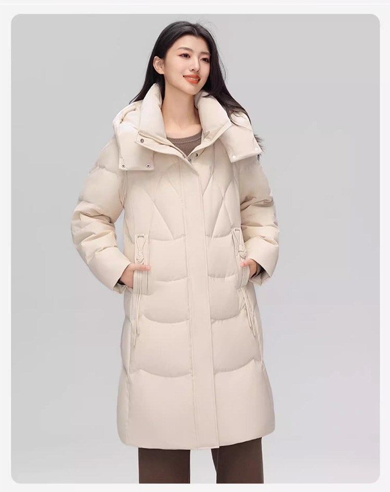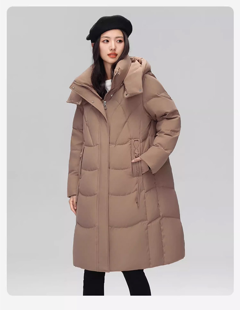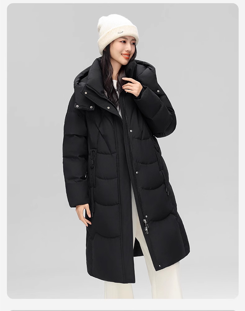 丰讯 女式中长款过膝冬季气质大牌中国风保暖连帽外套 FXYL6889 羽绒服 M 朱砂红(单位:件)
