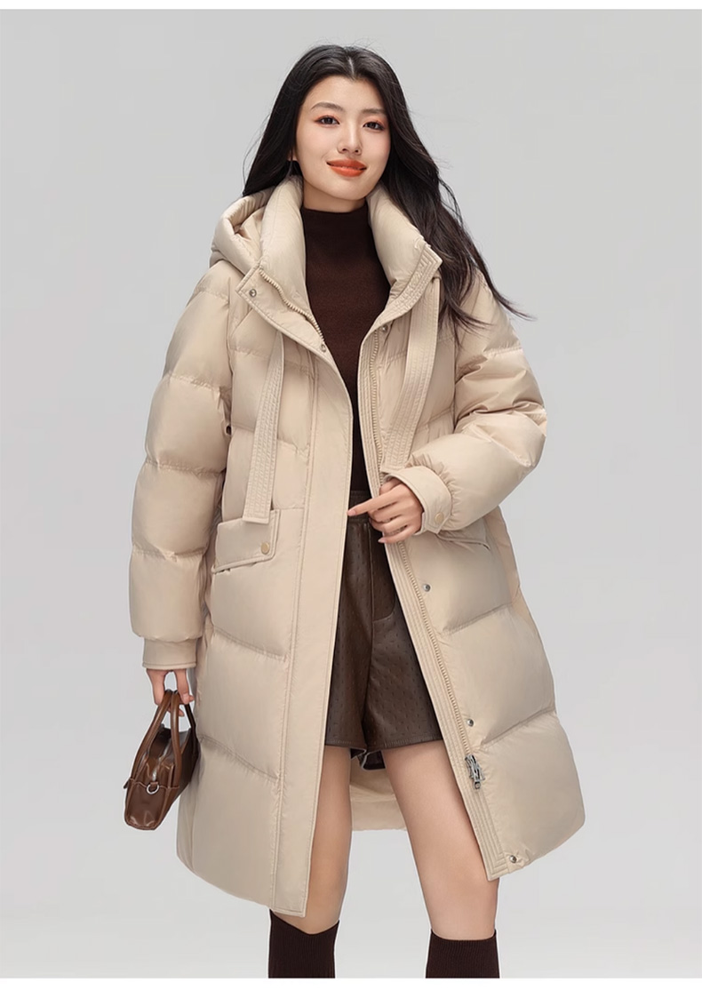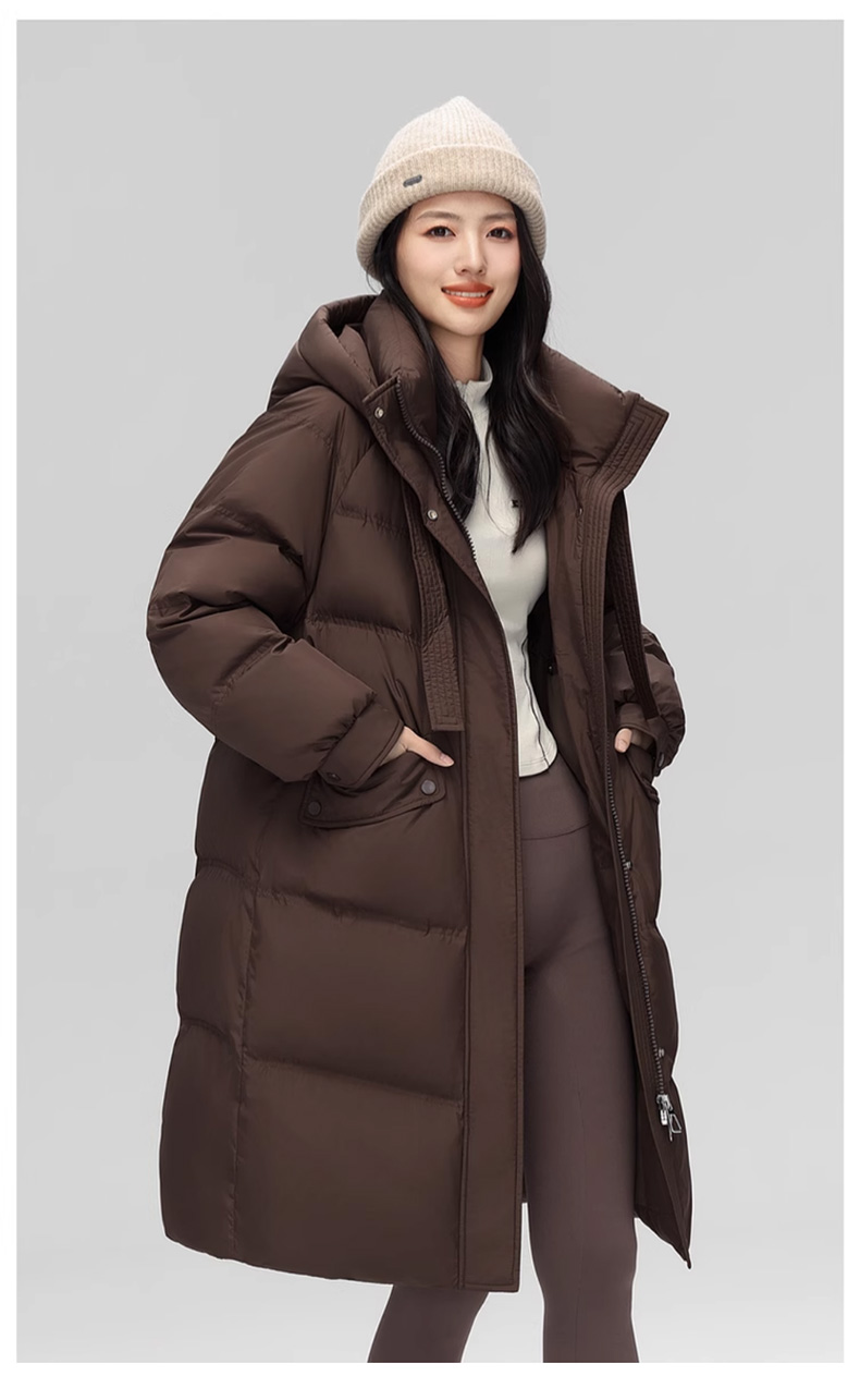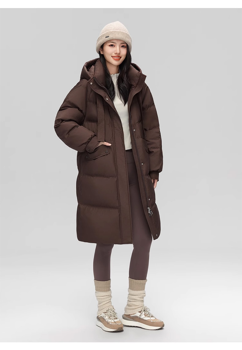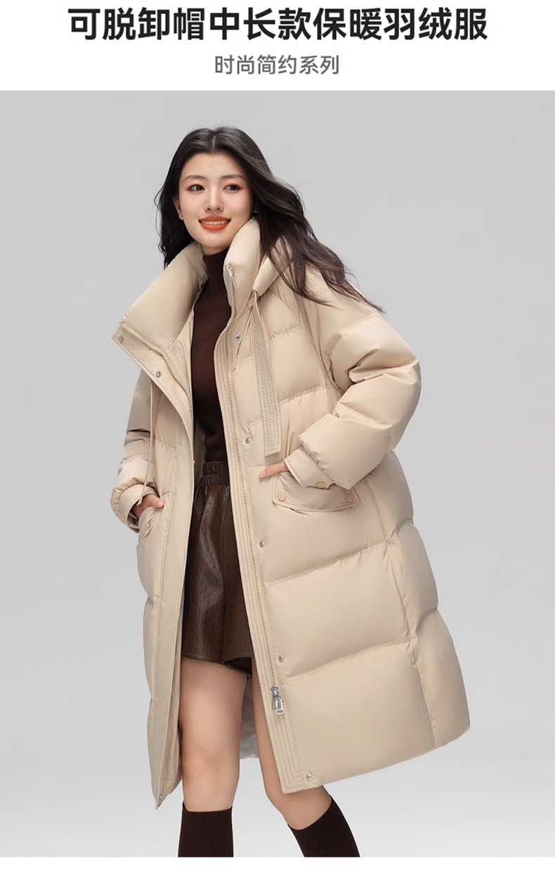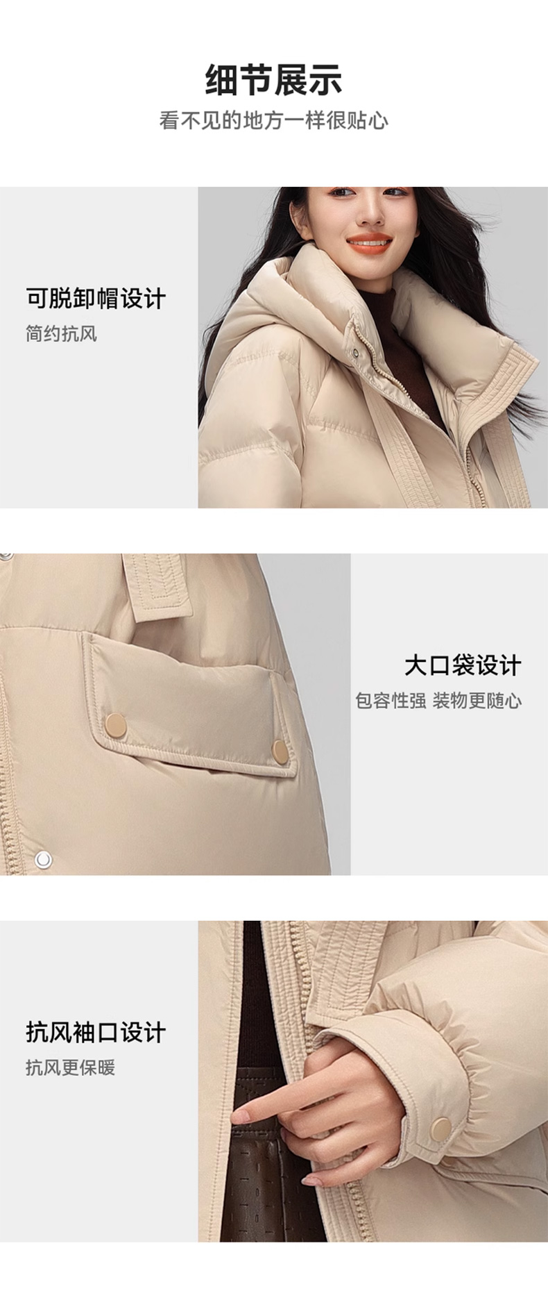 丰讯 冬季女士中长款可脱卸帽韩版甜美学院防寒外套 FXYL6887 羽绒服 S 咖啡色(单位:件)