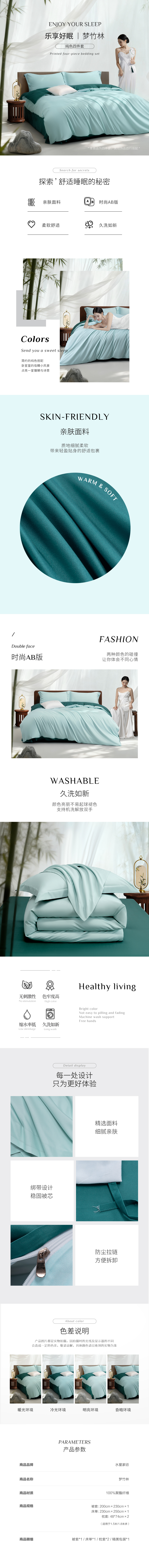 水星家纺 水星家纺梦竹林磨毛四件套 133807 200cm×230cm 水蓝色(单位:套)