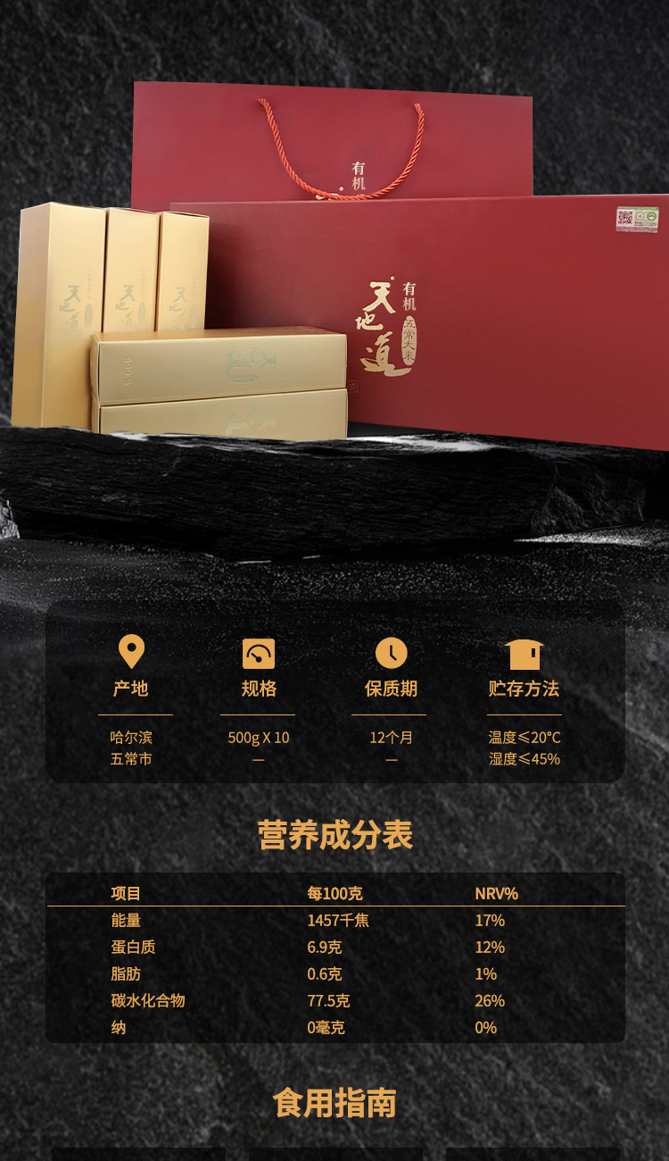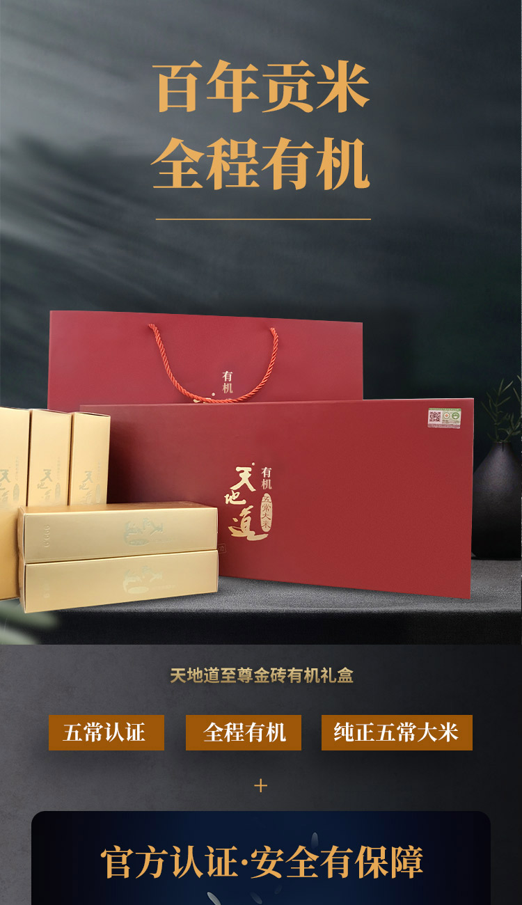 天地道 有机五常大米稻花香2号 至尊金砖礼盒 500g*10盒 红色(单位:盒)