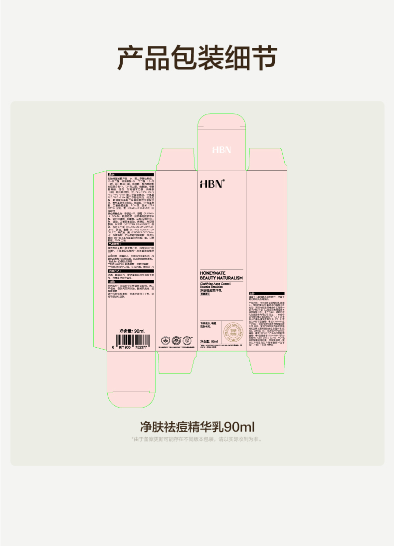 HBN 净肤祛痘精华乳(磨皮乳) NW-MPR01 90ml*1套(含2个小样) 混色(单位:套)