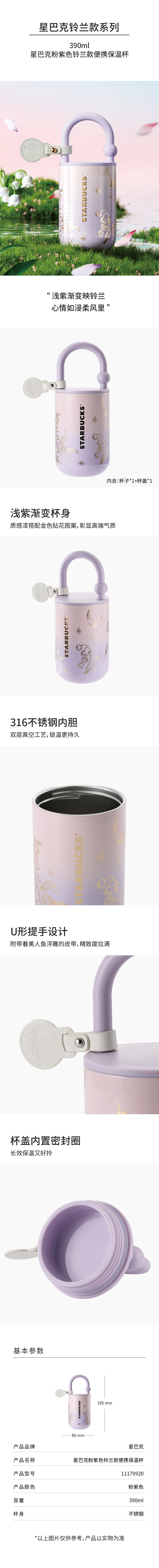 星巴克(Starbucks) 便携保温杯 11179920 390ml 粉紫色(单位:个)