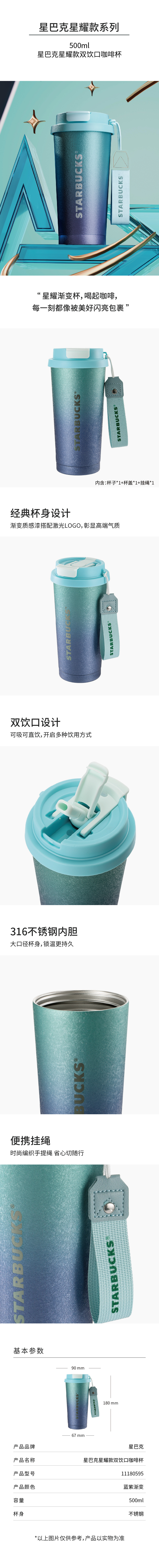 星巴克(Starbucks) 双饮口咖啡杯 11180595 500ml 星耀蓝(单位:个)