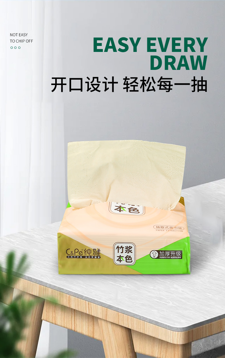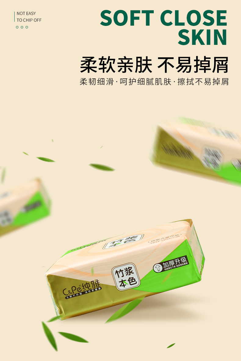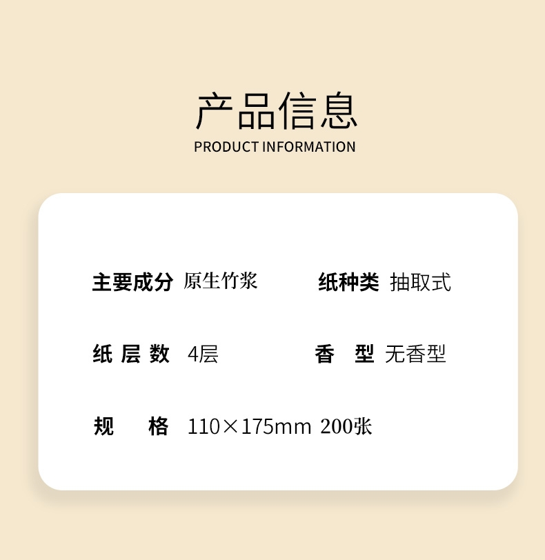 纯雅 抽取式面巾纸 竹浆本色 200张(4层50抽)6包 香槟黄(单位:提)