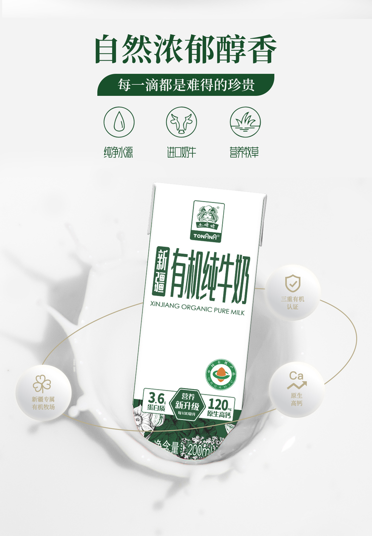 土姥姥 原生高钙 3.6新疆有机纯牛奶尊享版 200ml*10盒*3提 白色(单位:组)